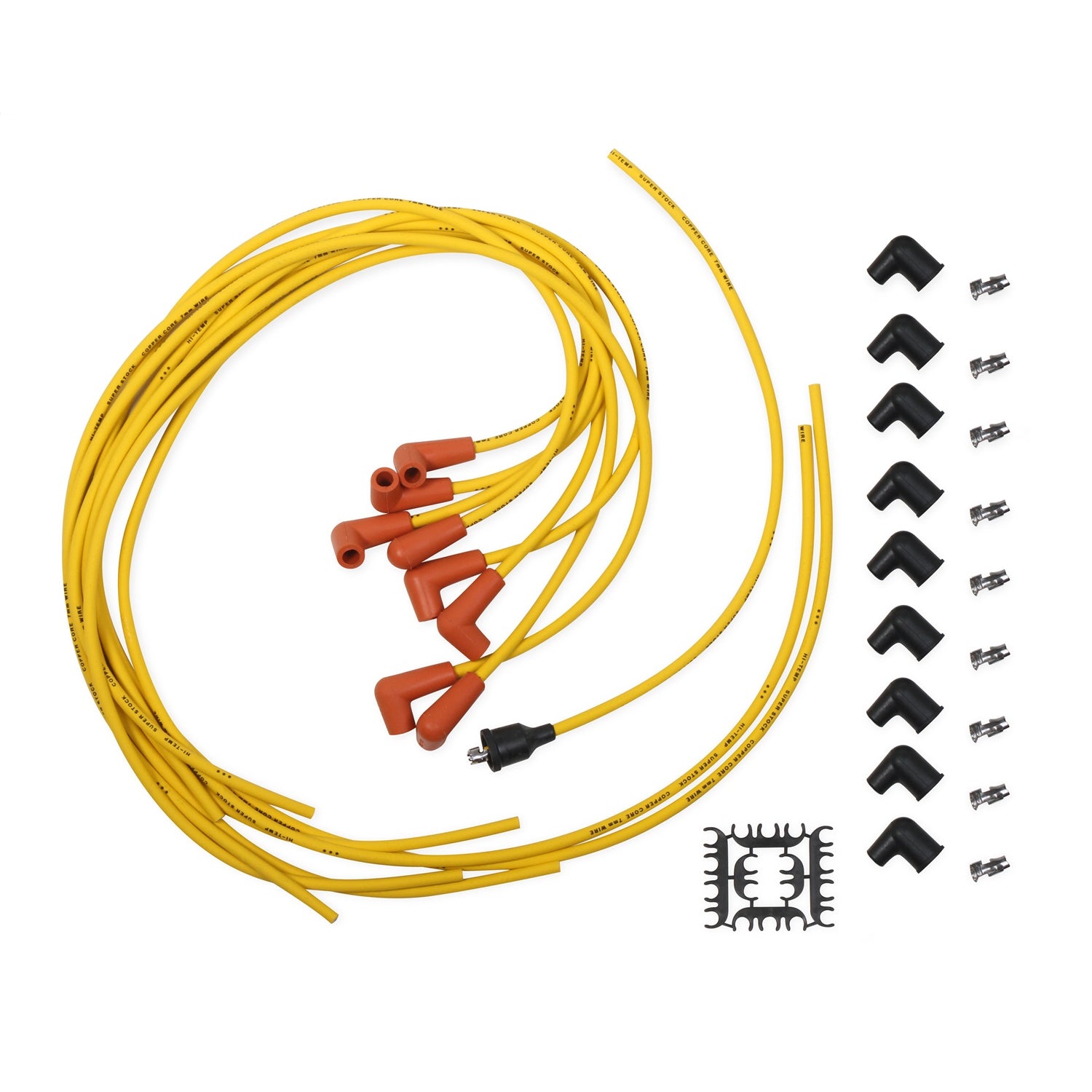 Universal Fit Super Stock Spark Plug Wire Set; Fits w/Pre-HEI Vehicles; 7 mm.; Copper Core; 90 Degree Orange Boots; Yellow; |