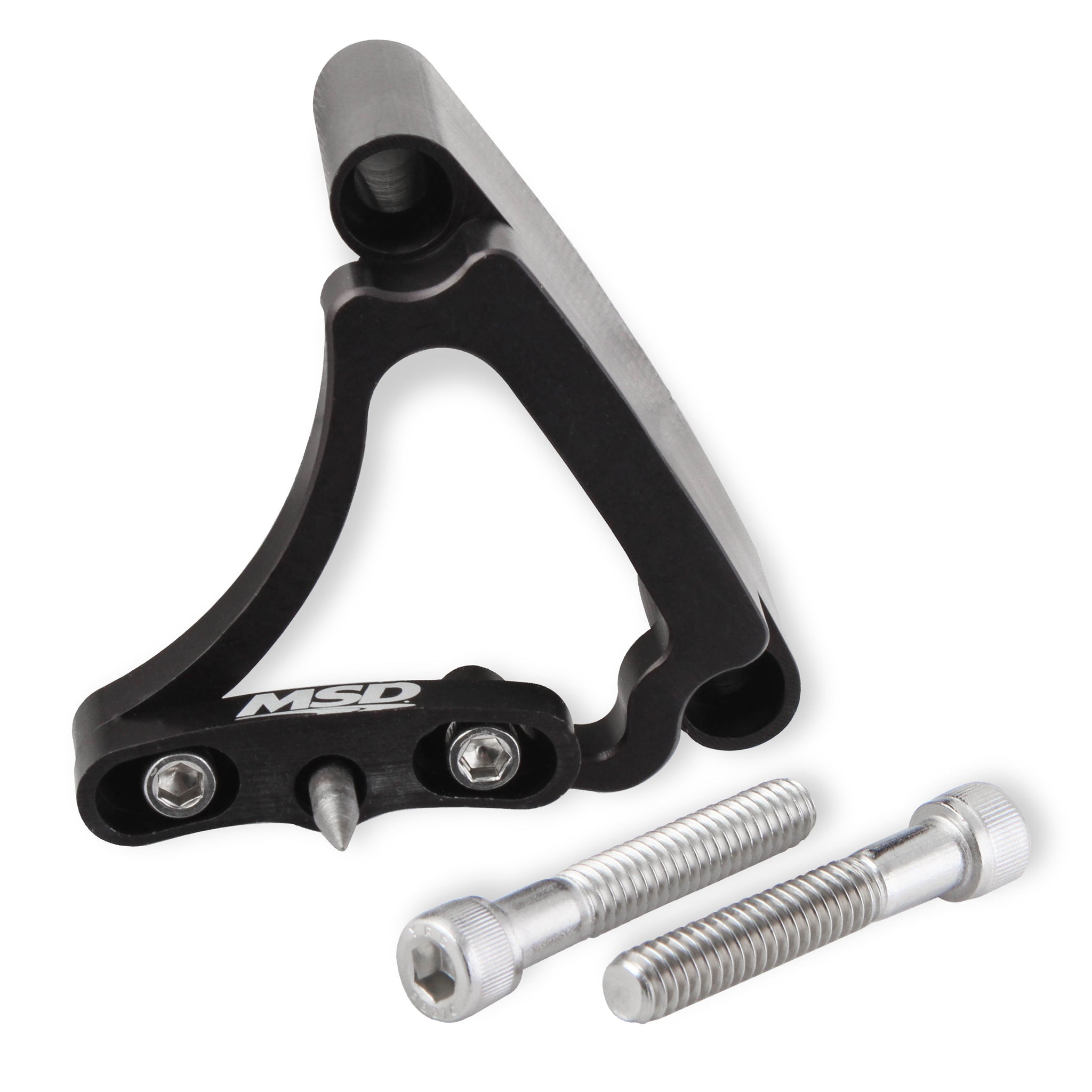 Complete your MSD ignition system with a precision adjustable timing pointer that is CNC-machined from 6061-T6 billet aluminum. Each pointer is fully machine-lightened for a great looking addition to any engine. The main body and adjustment assembly are black anodized for long-lasting corrosion protection. They are built to direct fit each application and various part numbers are available to fit multiple size balancers. MSD Timing Pointers are designed to work on Small Block Chevy, Big Block Chevy, and Small Block Ford engines and have a 4-degree range of movement for finding that precise timing location. Stainless steel hardware is included with each timing pointer.