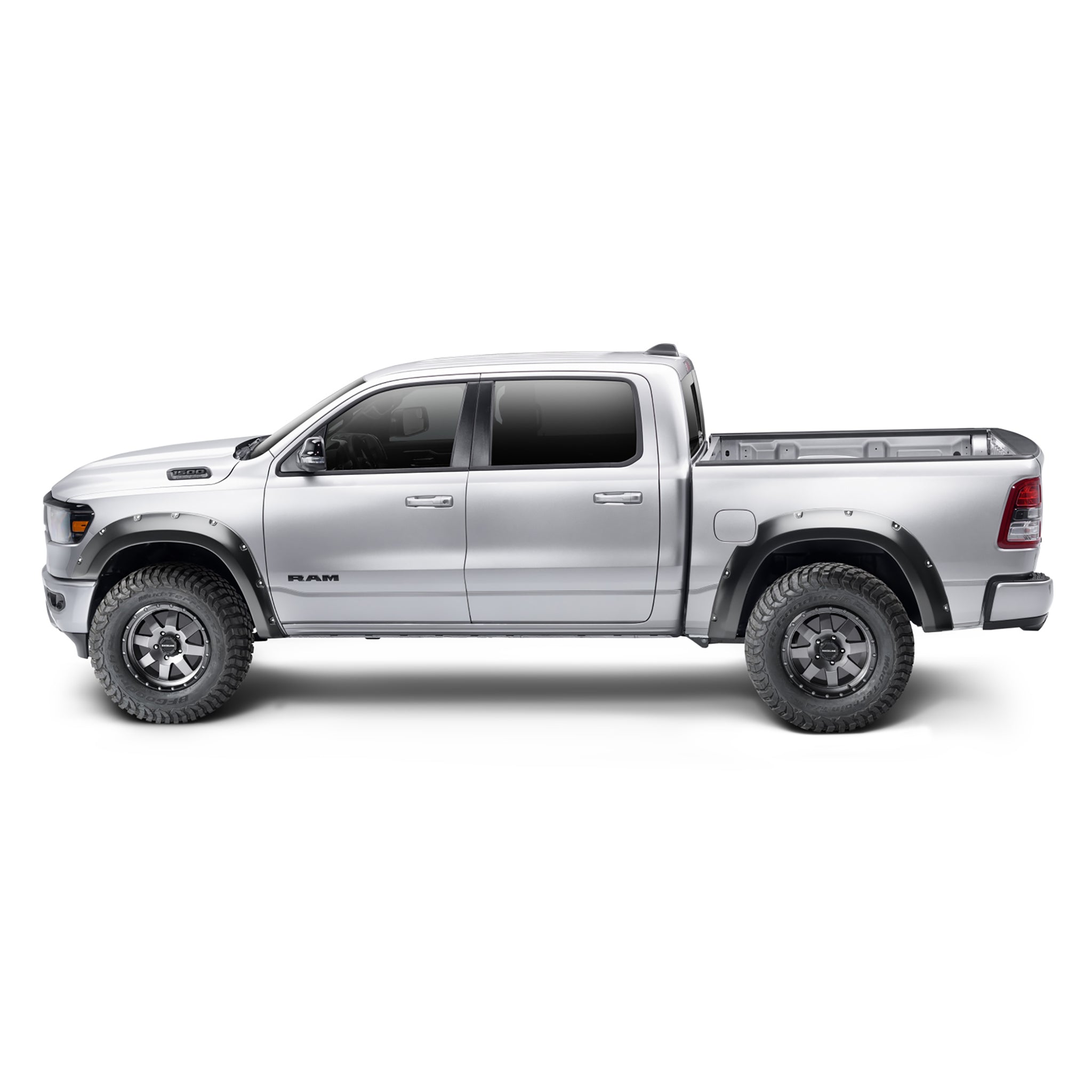 Bushwacker 50924-02 Black Pocket/Rivet Style Smooth Finish 4-Piece Fender Flare Set for 2019-2022 Ram 1500; Will not fit Rebel and TRX models |