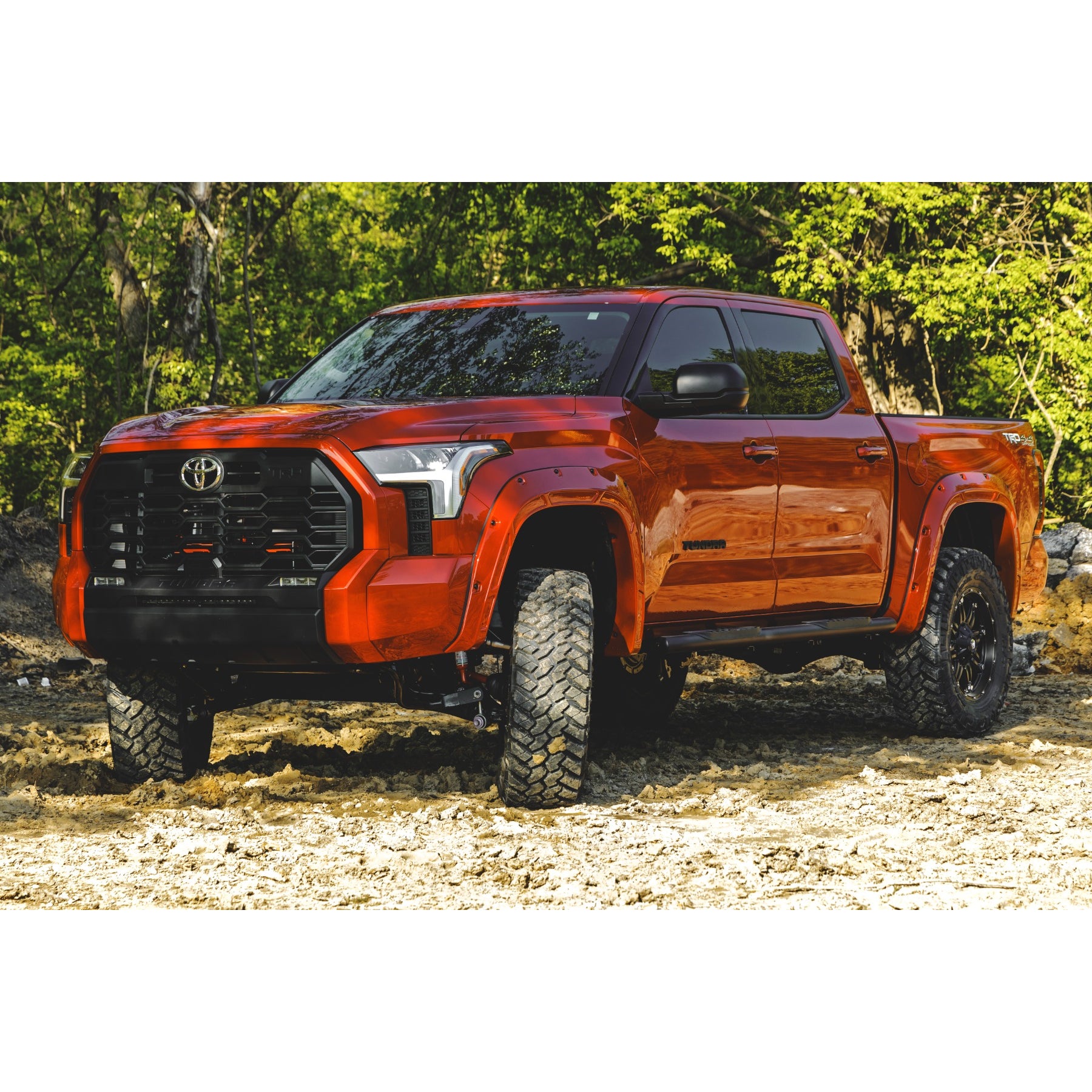 Innovative Design. It's time to stand out from the crowd and rise above your peers. Increase your truck's tire coverage with Rough Country's Defender Flares for the third-generation Toyota Tundra.These aggressively good-looking flares transform your Tundra's exterior boasting 2-inches of tire coverage. These uniquely designed flares are sure to protect your Tundra's body from mud or road debris kicked up by the tires.Durable Construction. With everyday truck drivers in mind, Rough Country designed a Fender Flare that recognizes your expectations for tough tactical design, and your right to demand products with high reliability and outstanding quality. Don't settle for anything less!Rough Country's Defender Flares are designed to handle on or off-road terrain. Rough Country's fender flares are constructed of a smooth ABS UV-protected Korad plastic. This material is lightweight and can endure the elements. The UV treatment process eliminates chalking and helps prevent sun fading.Limited Lifetime Replacement Warranty. Rough Country's Defender Flares are backed with a limited lifetime replacement warranty towards manufacturer defects. As such, the product is protected from structural and workmanship damage after the date of purchase.With our industry-leading warranty give yourself peace of mind when using Rough Country products!Features:Defender Pocket Fender Flare Flat Black Toyota Tundra 2WD/4WD (22-23)Low Gloss Black Korad UV Protected.2 inches of extra tire coverage.Protects vehicle from on and off-road debris.Installation hardware included.No drill installation with tough corrosion-resistant hardware.Unpainted flares include a UV-protected Korad low gloss cap to keep them looking new for years.Limited Lifetime Warranty. |