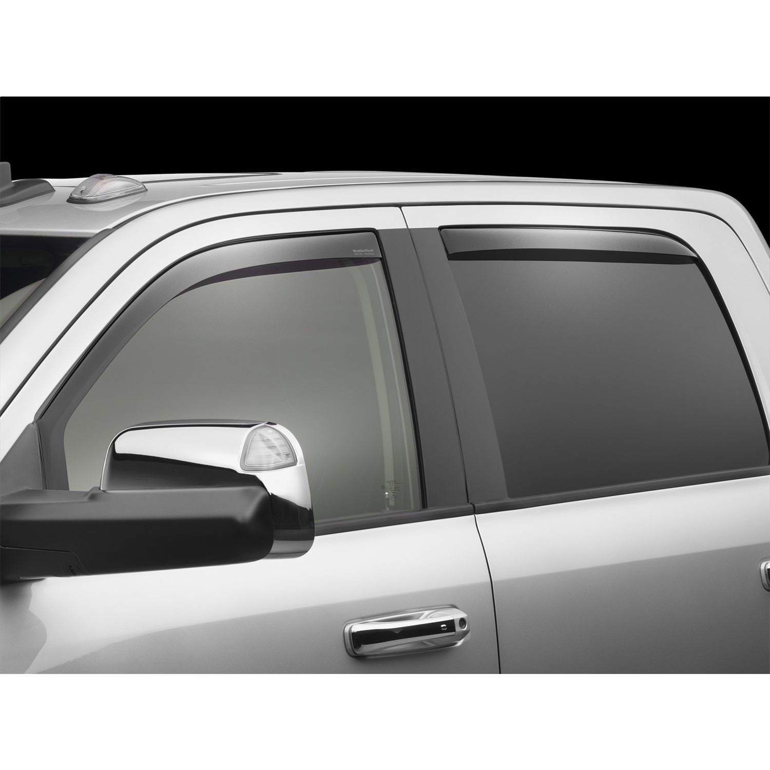 WeatherTech Side Window Deflectors offer you fresh air enjoyment with an original equipment look. They are crafted in Germany from the finest 3mm lightly-tinted acrylic material available. Installation is quick and easy, with no exterior tape needed. WeatherTech Side Window Deflectors are precision-machined to perfectly fit your vehicle. These low profile window deflectors help to reduce wind noise and allow interior heat to escape. Also available in dark tint for most vehicles.