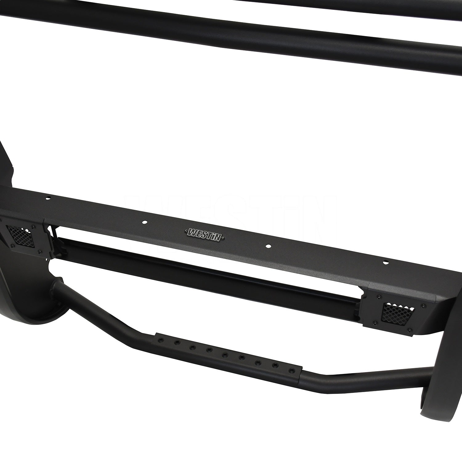 Westins Sportsman X Grille Guard effectively combines aggressive styling with heavy duty front end protection. Engineered to provide both great looks and performance, Sportsman Xs unique design compliments todays larger grille designs, and is available to fit most full and mid size truck applications. Sportsman X has an optional detachable mesh panel (sold separately) which is specifically designed to fit the opening in the center section of Sportsman X Grille Guard, or can be removed to accommodate the flush mounted 26" dual row LED light bar (sold separately). A smaller removable mesh panel designed for the factory sensor location opening is included as standard with Sportsman X. For specific Chevy and Dodge/RAM applications a Sportsman X Sensor Kit (sold separately) is available. An exterior step plate is located on the 1-5/8" bottom tube to provide easy access to the engine compartment. Built with heavy duty 2-1/4" upright rubber strips and 1- 5/8" outer tubes, Sportsman X Grille Guard is designed to provide protection and style for years to come.
