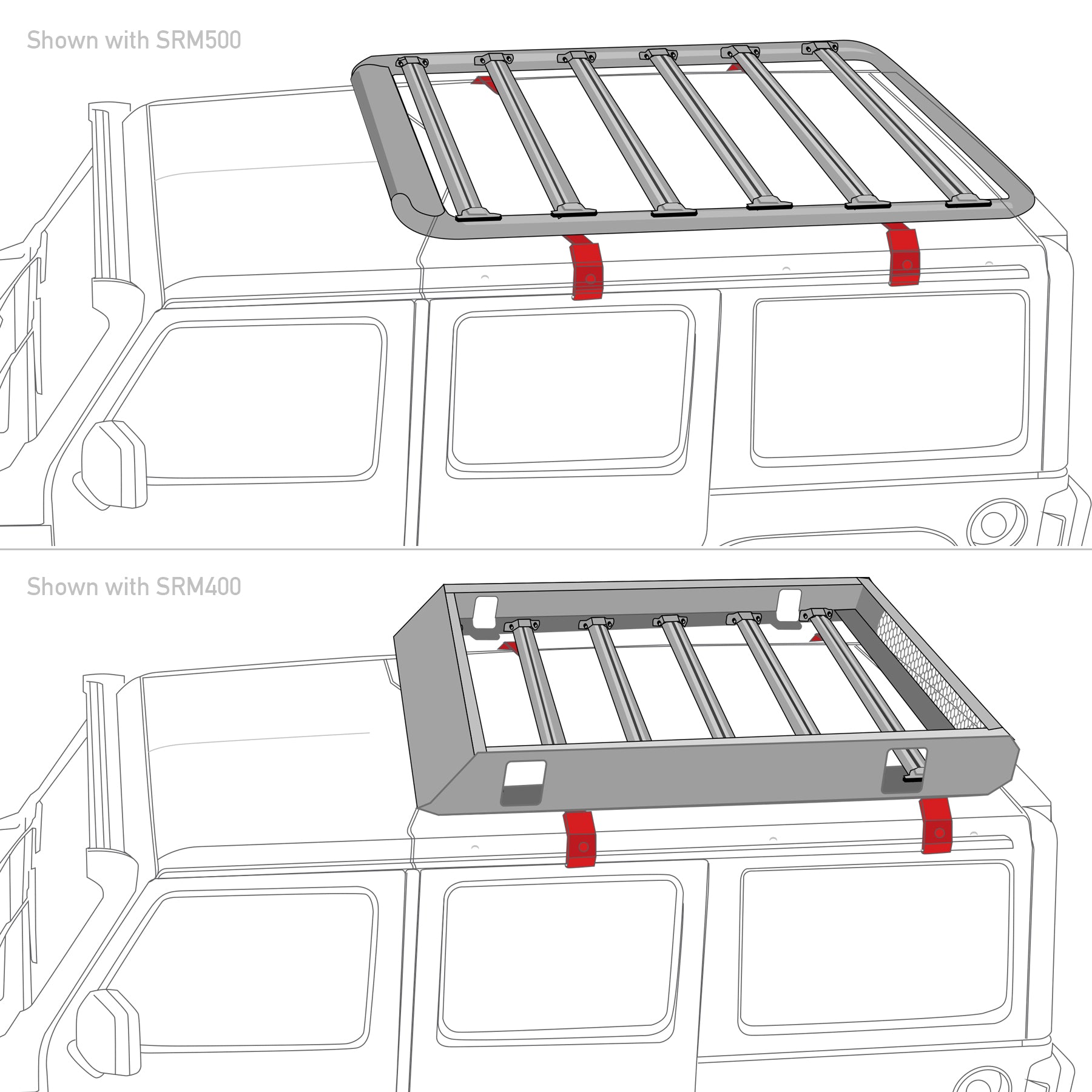 Note: Will not work with SRM300 racks on Jeep Wrangler |