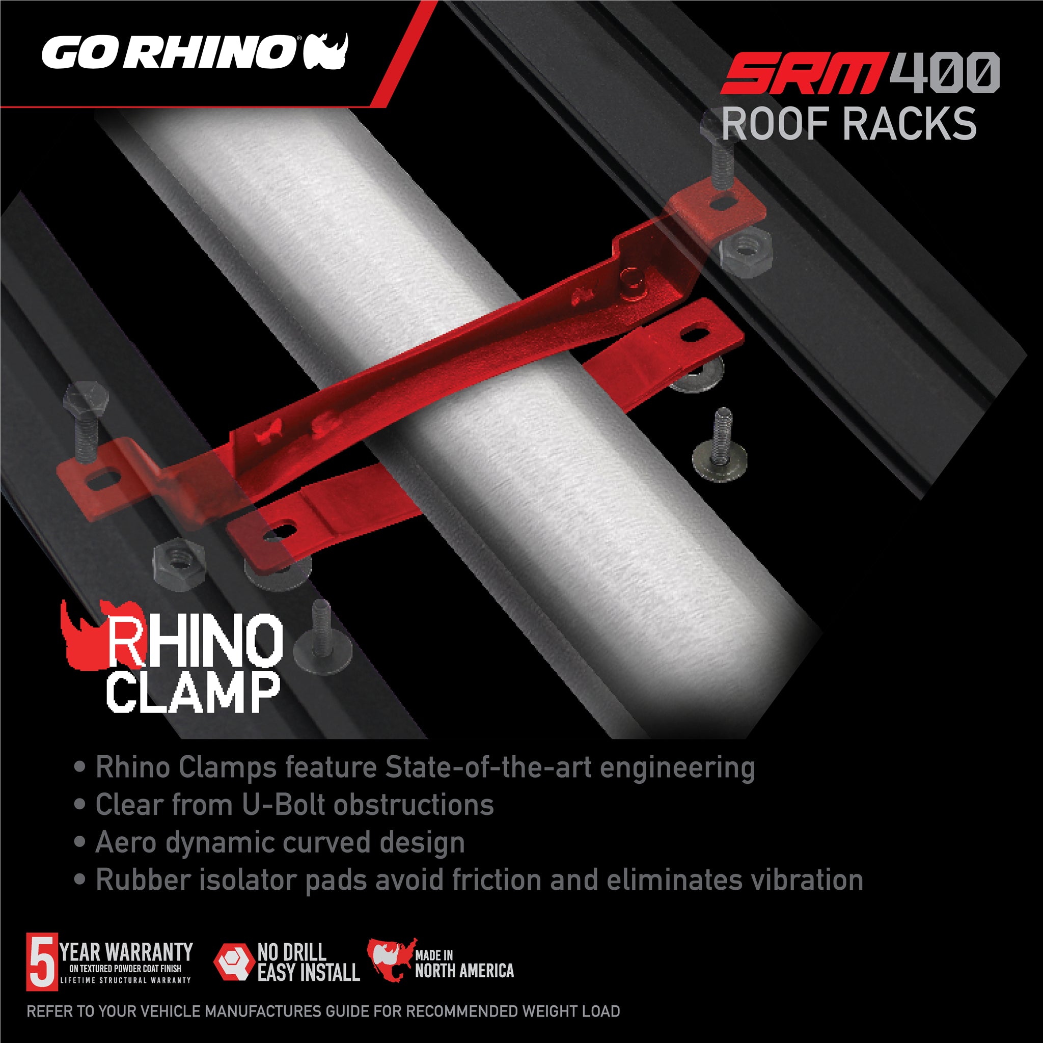Includes Rhino clamps(U-bolts) to mount rack to many styles of cross bars |