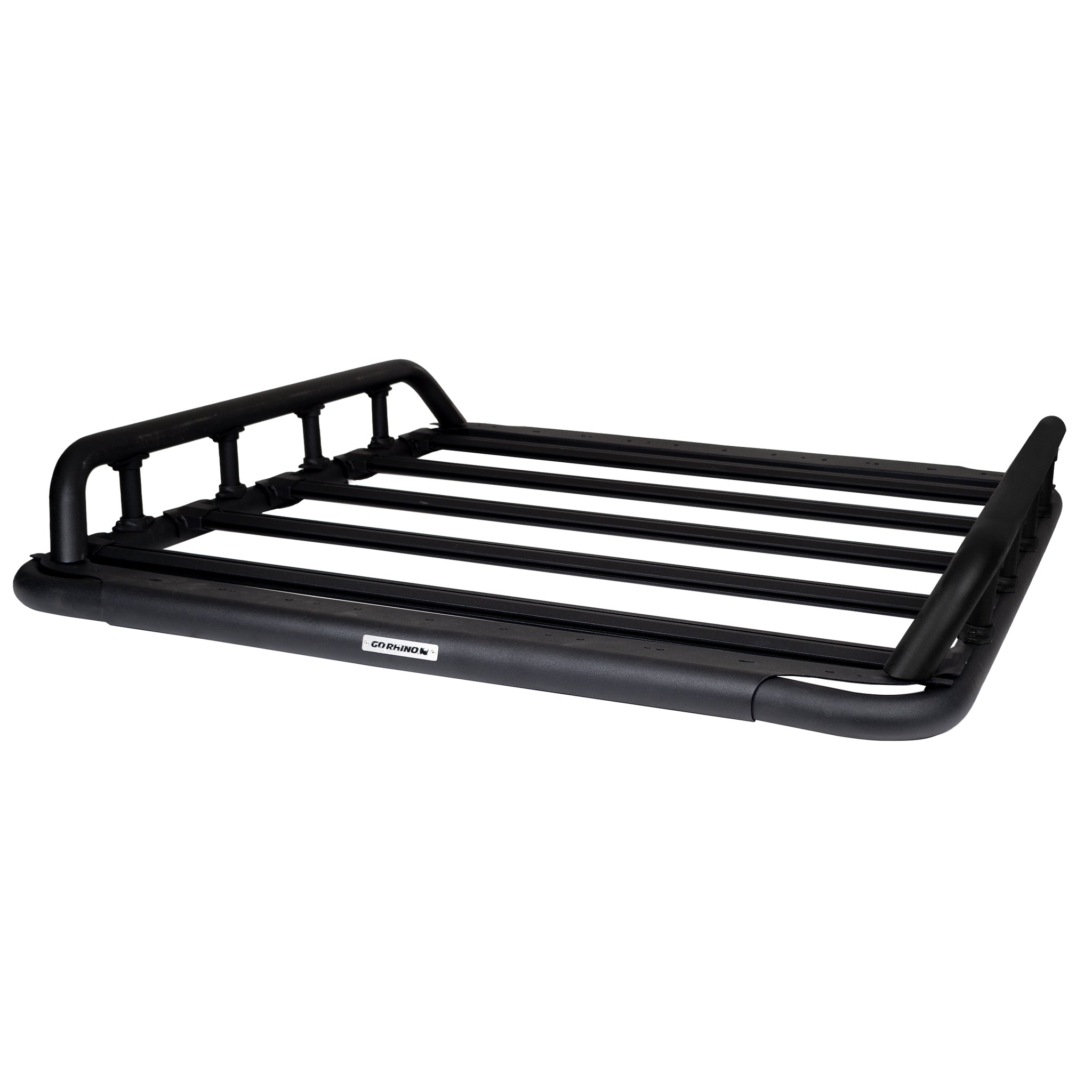 Description_MKT The Go Rhino SRM500 Roof Rack is a platform roof rack that is essential for the off-road and overlanding enthusiast. The flat mounting surface was designed for rooftop tent and the aircraft-grade aluminum construction with custom injection molded, reinforced nylon junctions offer both strength and weight savings. The SRM500 is equipped with Go Rhino's exclusive 4-CORE aluminum bars, the extruded track system that works with any 1/4x20 hex bolt and provides unlimited mounting options for gear and trail tools. The SRM500 is 52 inches wide, and 55" front-to-back, and can be mounted on any vehicle's OE crossbars with the included Rhino Clamp system. Other mounting options are also available. SRM 500 come with a Limited Lifetime warranty on materials and construction and a 5 year warranty on the Textured Black Finish.