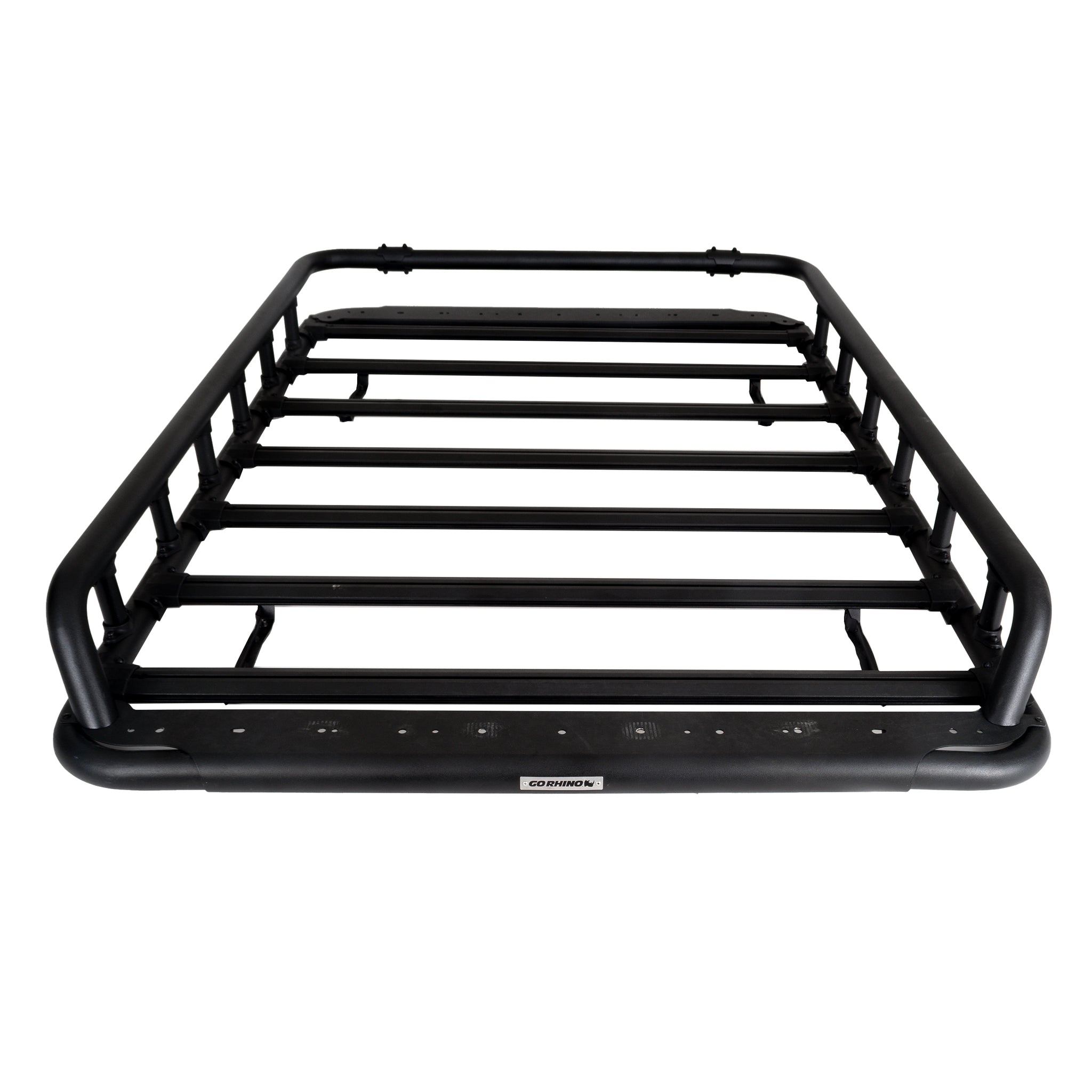The Go Rhino SRM500 Roof Rack is a platform roof rack that is essential for the off-road and overlanding enthusiast. The flat mounting surface was designed for rooftop tent and the aircraft-grade aluminum construction with custom injection molded, reinforced nylon junctions offer both strength and weight savings. The SRM500 is equipped with Go Rhino's exclusive 4-CORE aluminum bars, the extruded track system that works with any 1/4x20 hex bolt and provides unlimited mounting options for gear and trail tools. The SRM500 is 52 inches wide, and 75" front-to-back, and can be mounted on any vehicle's OE crossbars with the included Rhino Clamp system. Other mounting options are also available. SRM 500 come with a Limited Lifetime warranty on materials and construction and a 5 year warranty on the Textured Black Finish. |