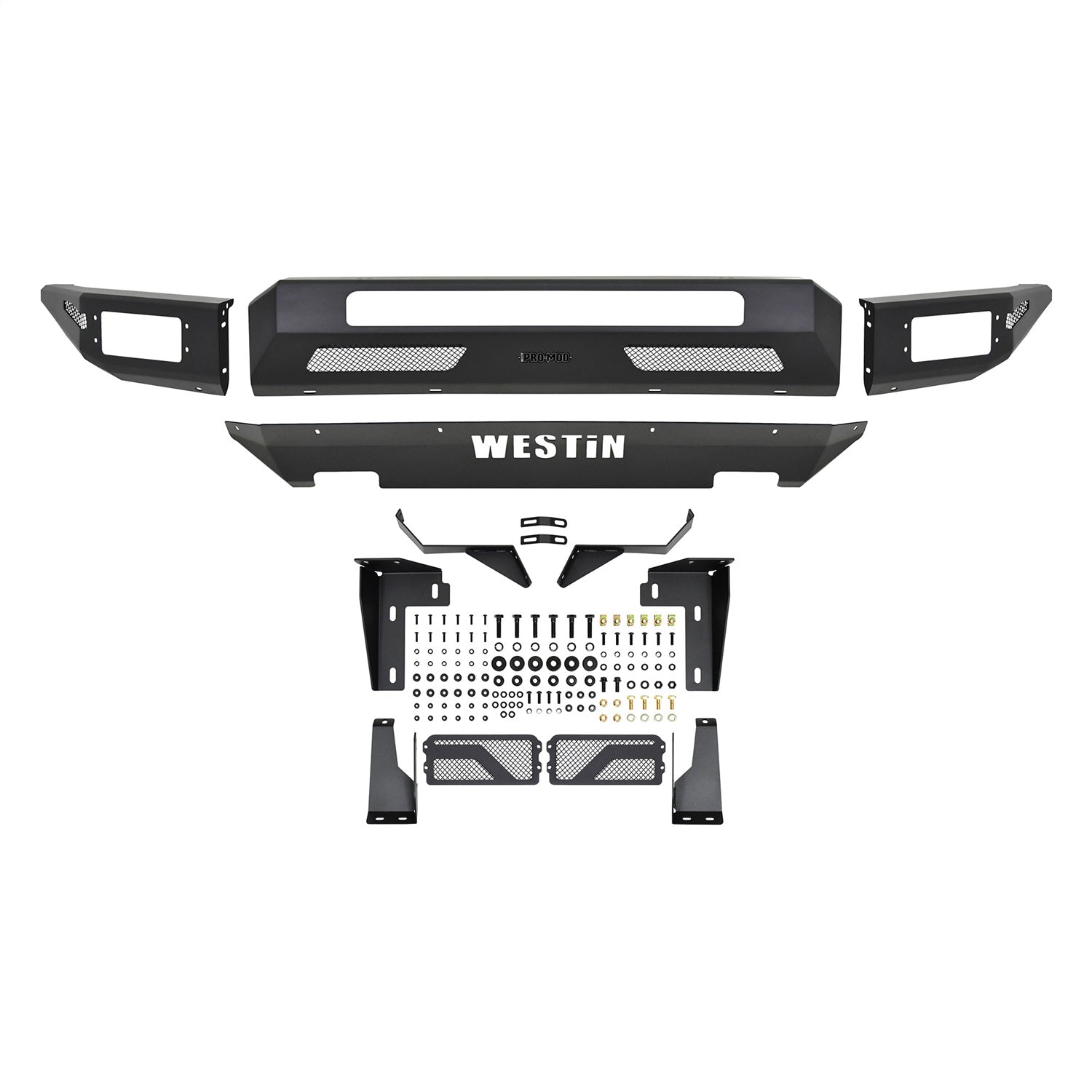 Description_MKT Westins Pro-Mod Front Bumper combines enhanced vehicle protection, with great looks. Pro-Mods revolutionary lightweight modular design is uniquely engineered with outrigger reinforcement brackets to provide maximum front end protection without compromising on strength, integrity or durability. The "high and tight" bumper profile creates a greater approach angle, which significantly improves off-road driving capabilities. The lightweight design also requires smaller shipping packages which dramatically reduces shipping costs. Pro-Mod bumpers feature a textured black finish with an e-coated base coat, providing long lasting corrosion protection from the elements. Once you see the Pro-Mod Front Bumper, the choice becomes obvious.