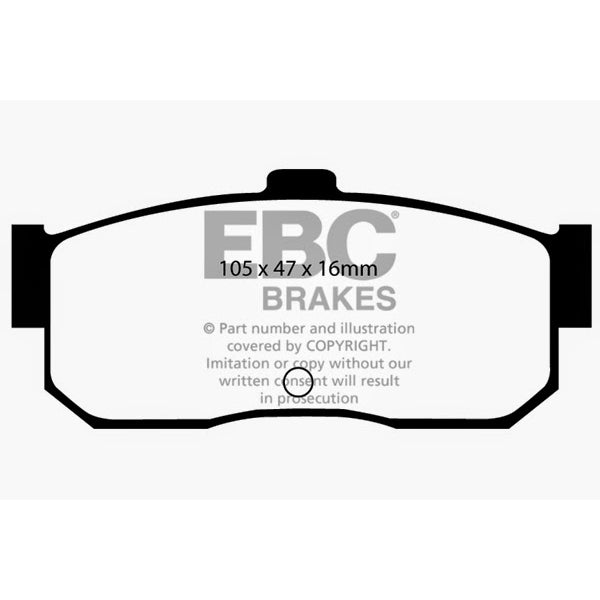 Designed for premium street driving offering better brake effect up to 600-degrees C (1100-degrees F). EBC Greenstuff has a high initial brake effect and gives drivers confidence from first application of the brake pedal. There is no such thing as a NO DUST pad. The very nature of how a brake works requires that some dust be generated to avoid rotor vibration (shimmying). The EBC pad creates less dust and dust is more easily washed off than most. All pads create more dust as they are bedding in especially if rotors are worn. Nominal friction coefficient 0.55. For heavier faster cars and vehicles above 200bhp we strongly recommend Redstuff which DOES offer much less dust. |