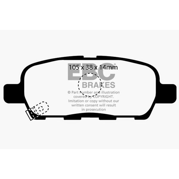 Description_MKT If you simply need a quality OEM replacement pad, look no further than Ultimax. Made in the UK Bristol EBC Brakes manufacturing plant Ultimax is a beautifully engineered brake compound that lasts well, produces minimal dust and is the perfect choice for the urban or daily driver. Why spend more if all you need is a quality replacement pad.The Ultimax pad does include a small percentage of steel fibre to achieve its price point, far less content than our competition where steel fibre content can attain 50 volume and this optimum fibre blend is what makes Ultimax both popular and unique amongst brake blends .Once bedded in Ultimax will inspire confidence in any car light truck or SUV no matter how you drive.Its universal heat range abilities and low rotor wear are additional benefits of the Ultimax pad range which is the EBC worldwide number one selling brake with numbers of sets sold running into tens of millions over the recent years. Unlike many of our performance grades Ultimax has remain unchanged as a pad compound for ten years now, a true testament to its success and customer acceptance. Why change a winning formula.Black coded in the EBC range EBC Ultimax is a fully ECE R 90 approved brake pad range and at its lower price point, less than HALF the price of original parts yet TOTALLY EQUIVALENT by nature of its R 90 brake safety approval, Ultimax offers great value for money and first class driving safety.When replacing brakes of any kind please remember how important brake safety is to your own well being and either have a professional mechanic install your new brakes or if you are a qualified mechanic use the EBC installation DVD as a guide in support of your vehicle owner's manual. These installation guide DVD tasters can be viewed here and the full DVD purchased from online vendors.