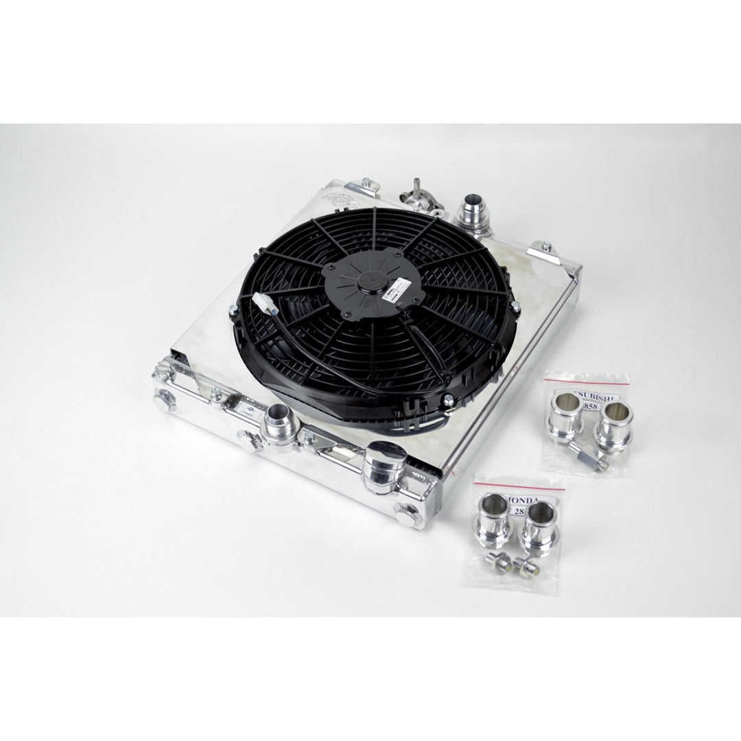 Title | Universal Half Radiator - Evo 7/8/9 / 92-00 Civic - w/ SPAL Fan & Shroud |