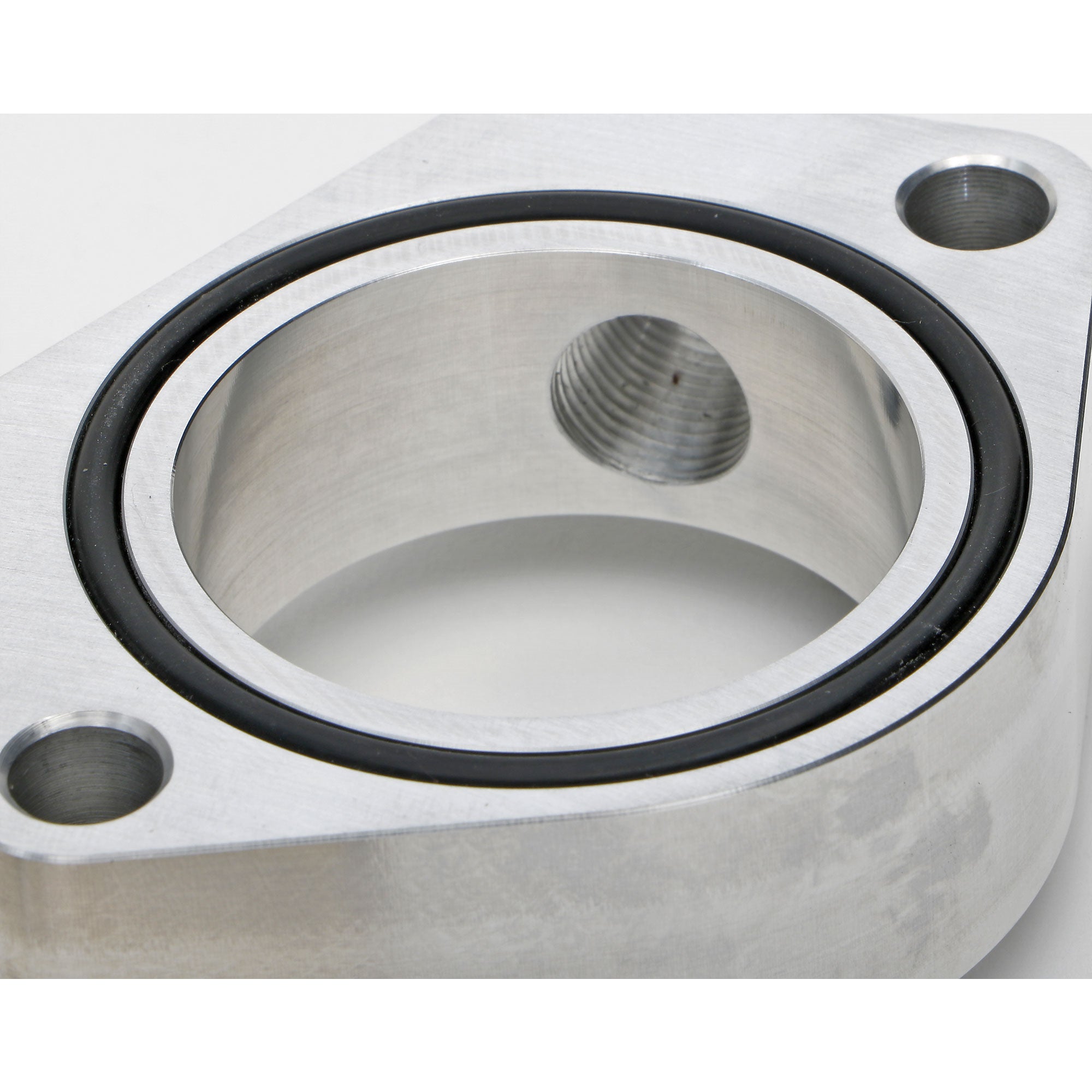 Trans-Dapt CNC machines these risers from durable T6061 aluminum and clear anodizes them for longlasting looks. A captured o-ring is used to ensure a leakproof installation, and a recessed thermostat groove to allow the thermostat to sit flush with the sealing flange.