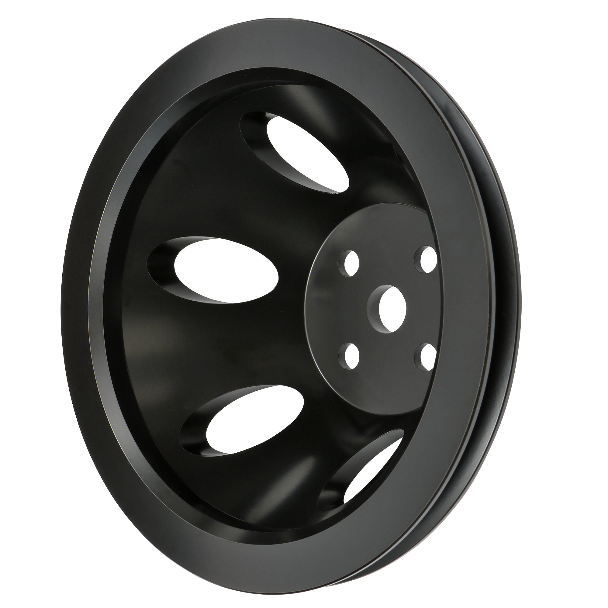 Trans-Dapt s quality aluminum pulleys are made using 356 aluminum alloy and heat-treated to T-6 specs. They are the perfect complement to Trans-Dapt aluminum valve covers, water necks, breathers and brackets. Many Trans-Dapt aluminum pulleys are now available with a great looking black finish. Water pump pulleys come complete with mounting bolts. crankshaft pulley bolts are sold separately.