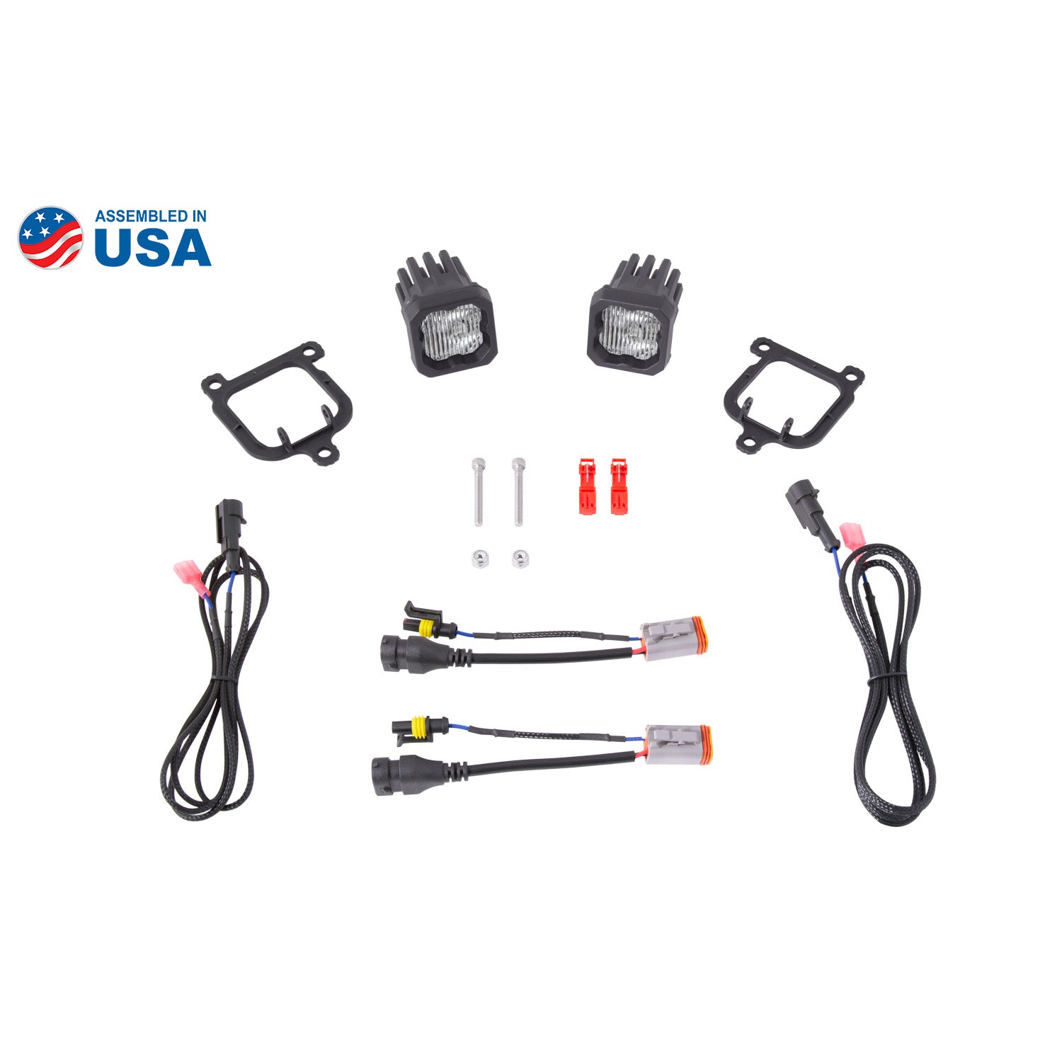 Description_ASC | Included in the box: Two (2) SSC1 standard LED pods. Two (2) T-taps. Two (2) H11 DT 4-Pin adapters. Two (2) Type FBS brackets. Mounting hardware. |