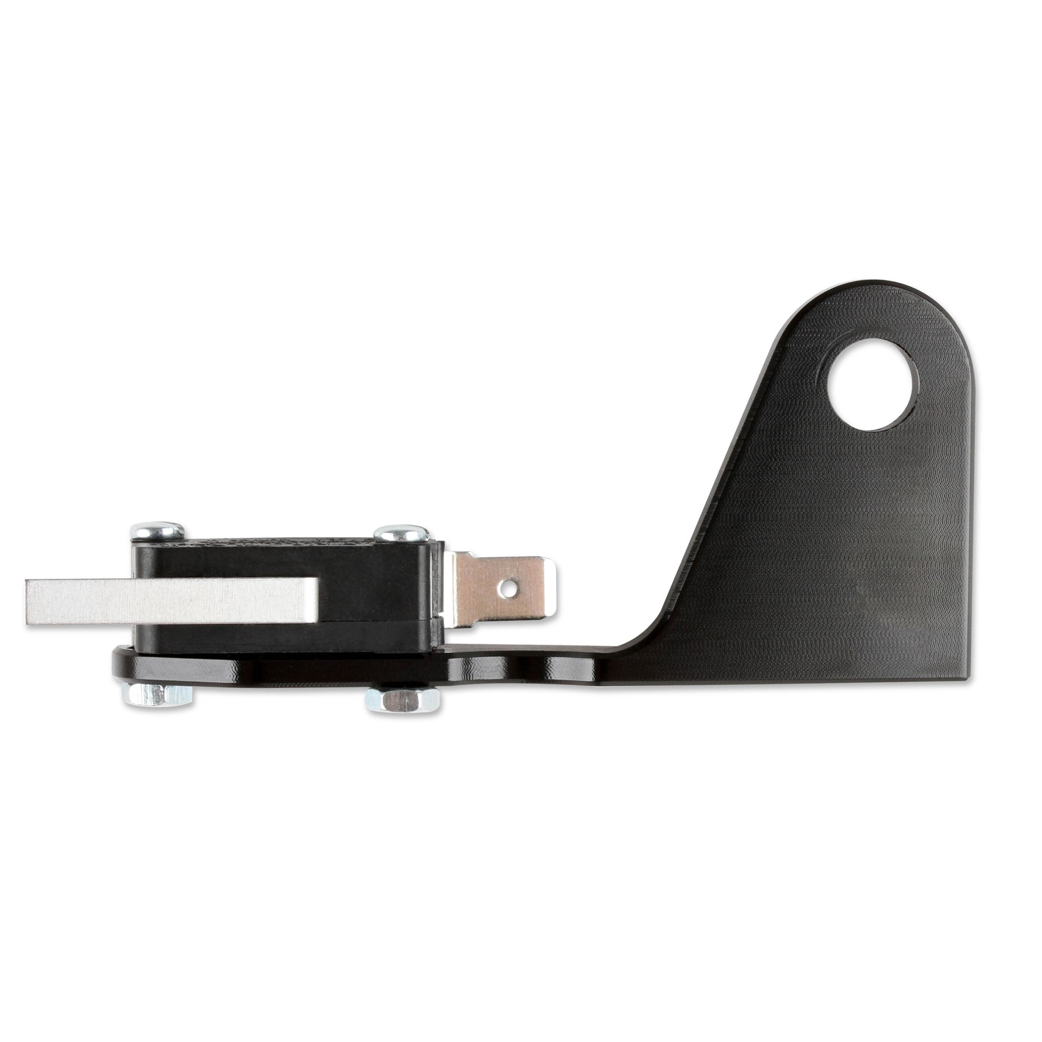 Description_MKT NOS is proud to release its new billet microswitch bracket kit designed specifically for Holley's Gen 3 Dominator carburetors. This great looking black anodized aluminum bracket features a laser engraved NOS logo. The billet design will not flex or bend allowing consistent nitrous activation every time. Kit includes bracket and microswitch.