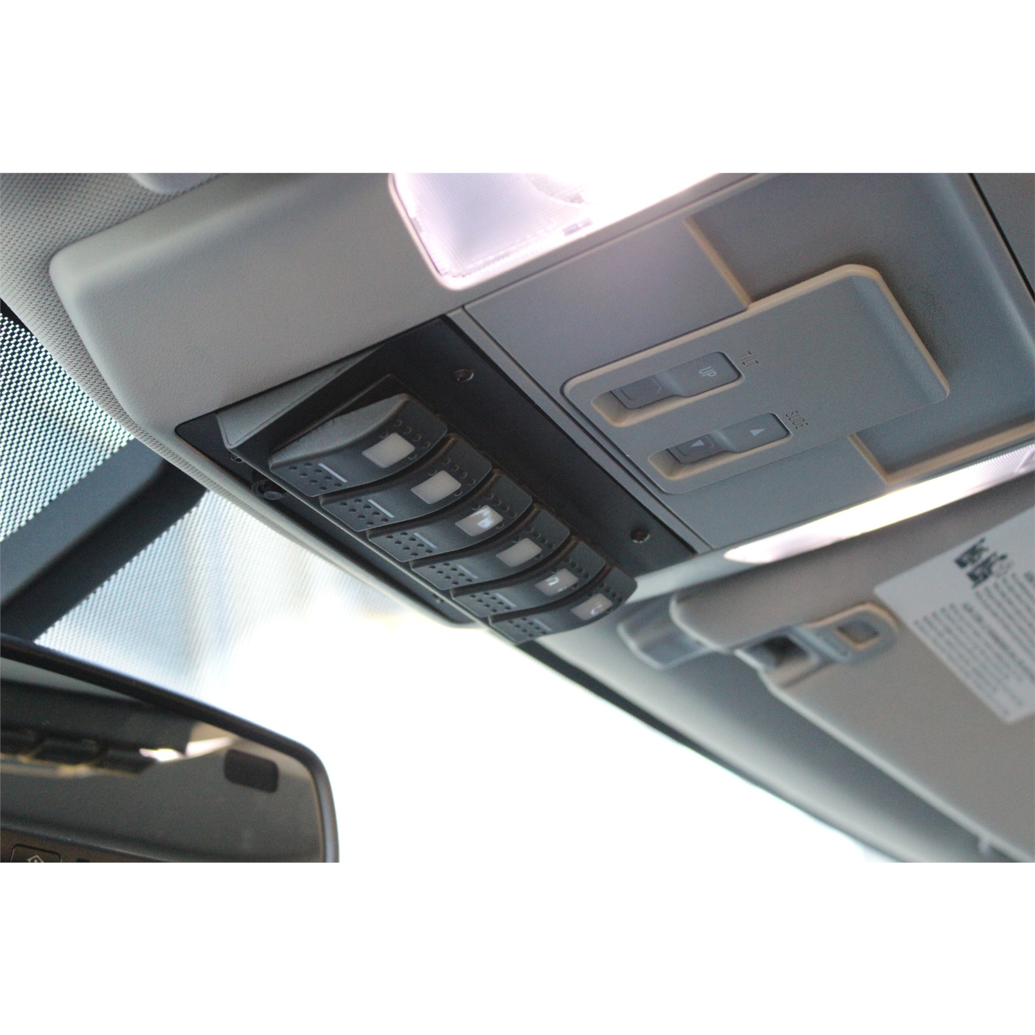 SourceLT w/ Red LED Switch Panel for 2012-2017 Toyota Tundra. Switch panel is installed in place of the sunglass compartment. The SourceLT will save hours of wiring and installation time! It is a small, solid-state 6-circuit control system that provides a clean (one cable into the cab!) and safe way to power and control 12VDC accessories.Due to the small footprint of the SourceLT, the placement options are endless! No cutting, fishing wires into the cab or tapping into the vehicle's electrical system. It's the perfect over-all solution for all your aftermarket electrical accessories with options unmatched by anyone.Features:SourceLT w/ Red LED Switch Panel for 2012-2017 Toyota Tundra6 circuits rated at 30 amps at 12.5 VDC per circuit12-position terminal block (easily attach accessories)Controller cable (10 foot) for simple plug-n-play connectivity to the switch controllerIntegrated low voltage cutoff (LVCO) battery protection w/ optional overrideSelf-healing fault protection circuits (from 1.5 to 30amps)Current-sensing MOSFETs controlled by a microprocessor (no fuses and no relays)50amp auto-resetting circuit breakerNylon braided 36 inch battery cables are hi-strand crosslinked copper wire with a silicone jacketOperates on 12VDCBuilt-in Bluetooth capabilities for remote controlProtection against: overheating, over-current, shorts, reverse polarity and field collapseOn-demand wireless software updates/upgradesHardware:Powder coated steel base w/ built in hardwareSilicone gasket for weatherproofingSimple thumb screw fastening aluminum lid with convenient silkscreened outlines for placement of supplied legendsUniversal and vehicle specific mounting optionsRobust insulated base and coverFeatures Available Through sPOD Mobile App (free):Each switch can be programmed for:DimmingStrobeFlashMomentarySwitch LinkingOn-Road and Off-Road mode of operationSwitch Panel:Switch panel with six dual lit LED switches (installed and pre-wired)All wires are wrapped in high-temp abrasion resistant nylon braided sleeving.Comes with a 10 foot control cableAluminum panels are formed, welded and powder coatedCarling Technologies Contura switches (certified to IP66/68 - marine/harsh environment)Controlled lower pilot light (push button)Custom laser-etched rockers are available (sold separately)Auto safe system shutdown when panel is unpluggedBluetooth Requirements:Access to iTunes or Google Play Store to download the sPOD appBluetooth 4.0 compatibleCompatible with Android devices running 8.0 Oreo (API 26) or laterCompatible with iOS 11 or newer, iPhone 7s or newer, iPad 2 or newer, iPad miniMust have existing sPOD system