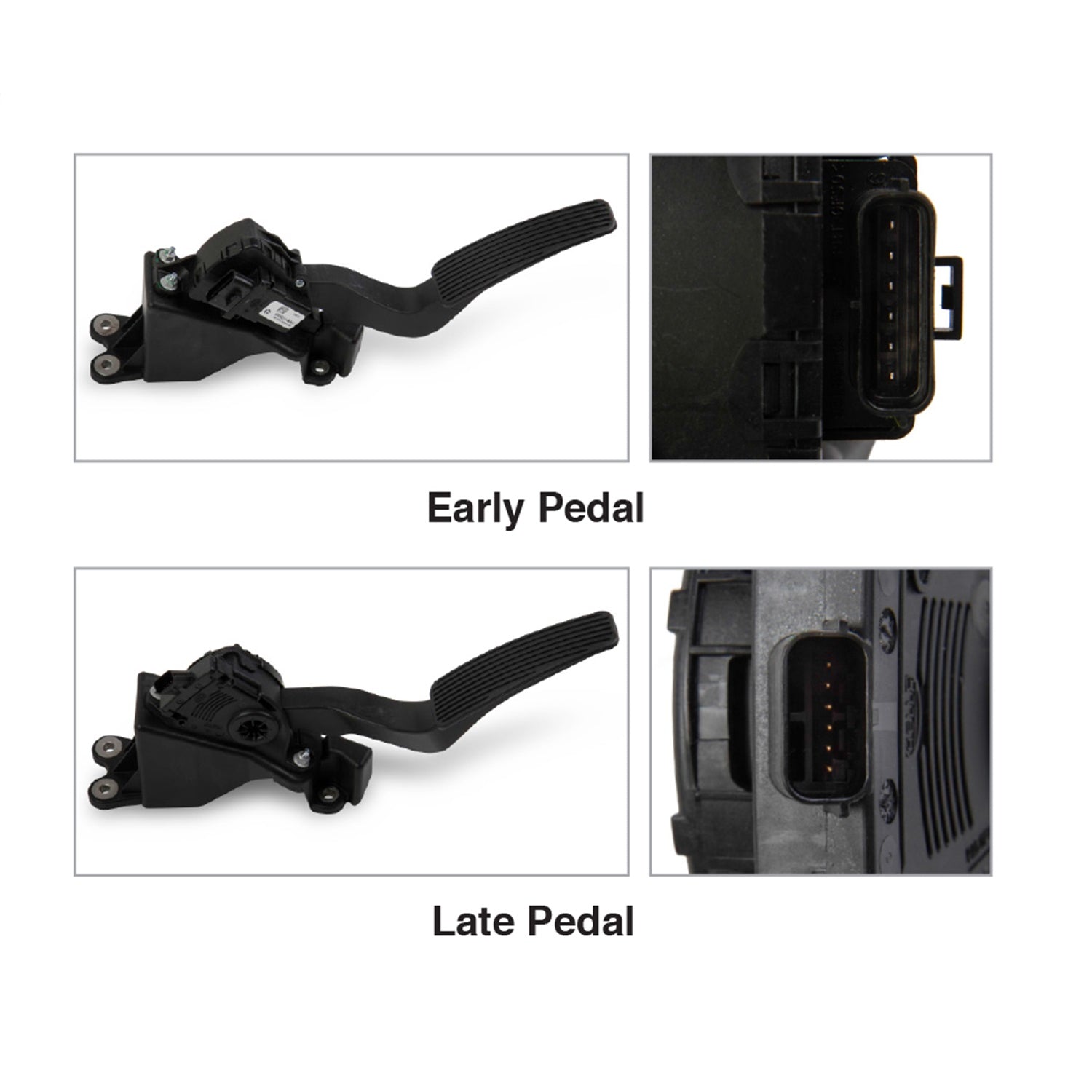 Description_MKT Similar to the changes with the cam and crank sensors, the Drive-By-Wire throttle pedal connector was changed in 2008 on cars while the trucks changed in the 2007 models. Interestingly, the throttle body connector is consistent on all engines. The early pedals use a larger connector. View the image gallery to see both types.