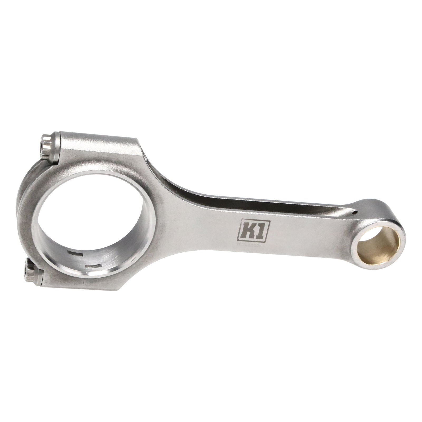 Description_MKT K1 Technologies connecting rods are manufactured with optimized strength and weight characteristics in mind to deliver reliable performance. Forged from 4340 steel, K1 rods featured a shot-peened surface finish which smooths surface blends and reduces potential stress profiles. K1 connecting rods are held to strict quality standards and undergo magnetic particle testing to ensure material properties are free of flaws. Each rod is also subject to bore tolerance compliance, holding them to +/- .0001? after finishing. Additionally, K1 rods are balanced and tested to be within +/- 1 gram per end. A dual-ribbing design on the rod caps of K1 connecting rods helps maximize strength and allows the rod big end to maintain roundness as engine RPMs increase. Full-floating, precision-honed bronze bushings are fixed into the small ends of the rods for low friction and high wear resistance. Fitted with ARP 2000 rod bolts rated at 200,000 psi tensile strength for most applications, K1 connecting rods deliver an industry-leading combination of strength and value.