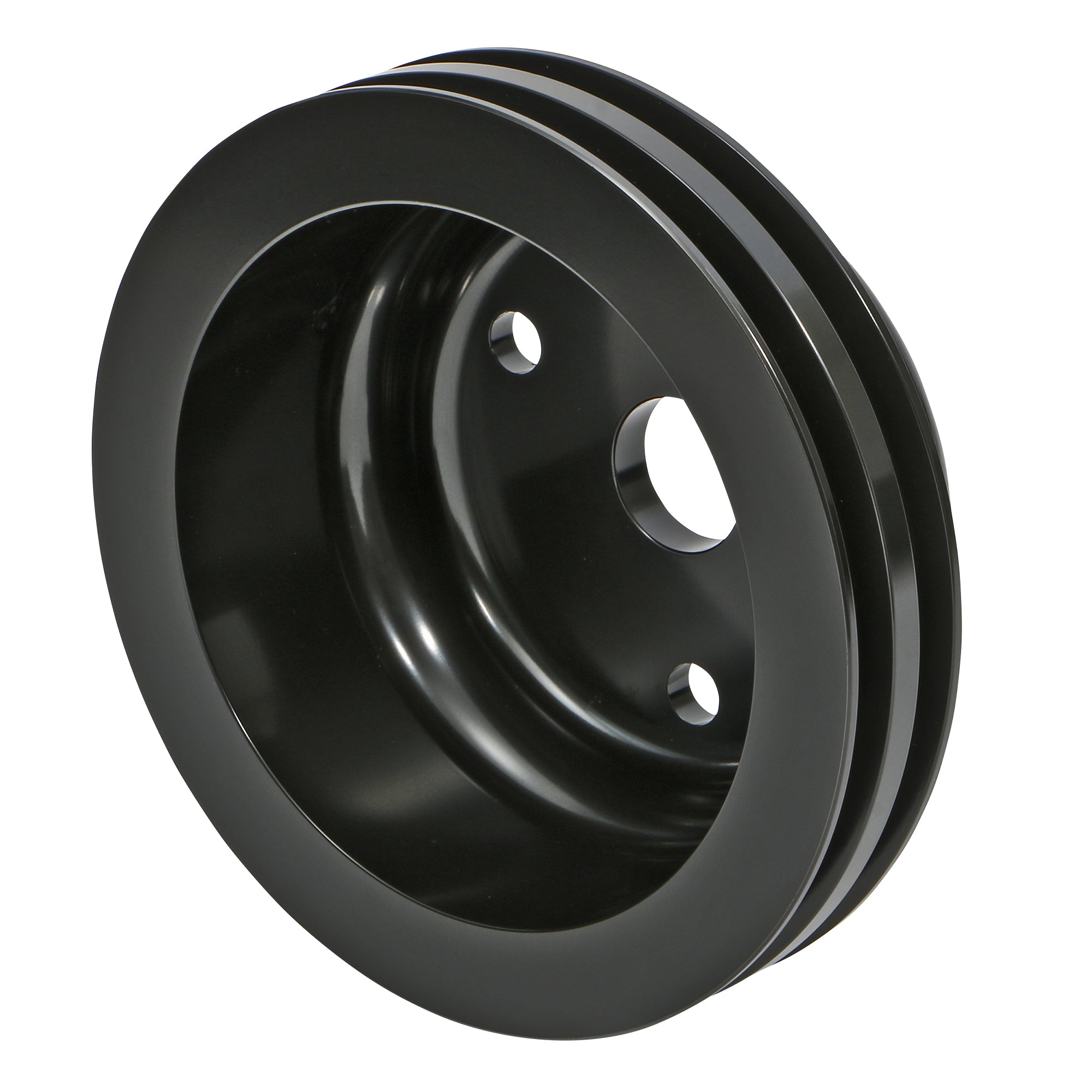 Trans-Dapt 7147 ALUMINUM SB CHEVY CRANKSHAFT PULLEY; 2 GROOVE; LONG WATER PUMP- BLACK FINISH