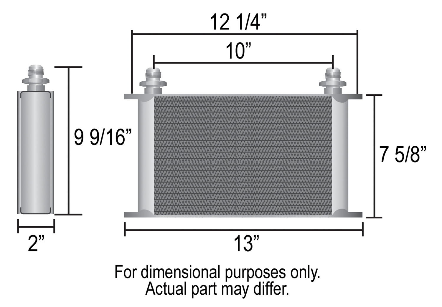 Our most efficient heat exchanger, the all aluminum 25 row Stacked Plate cooler features sturdy furnace brazed construction, full 2" deep turbulator-equipped plates and a black powder coat finish. With minimal pressure drop it can be used for engine, transmission or fuel cooling. Includes bright aluminum anodized finished -10AN male adapter fittings.