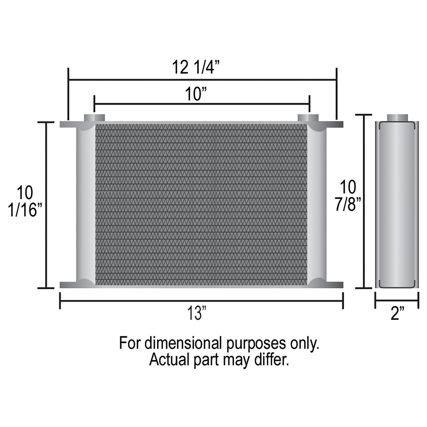 Our most efficient heat exchanger, the all aluminum 34 row Stacked Plate cooler features sturdy furnace brazed construction, full 2" deep turbulator-equipped plates and a black powder coat finish. With minimal pressure drop it can be used for engine, transmission or fuel cooling. Includes bright aluminum anodized finished 90 degree swivel -6AN male adapter fittings.
