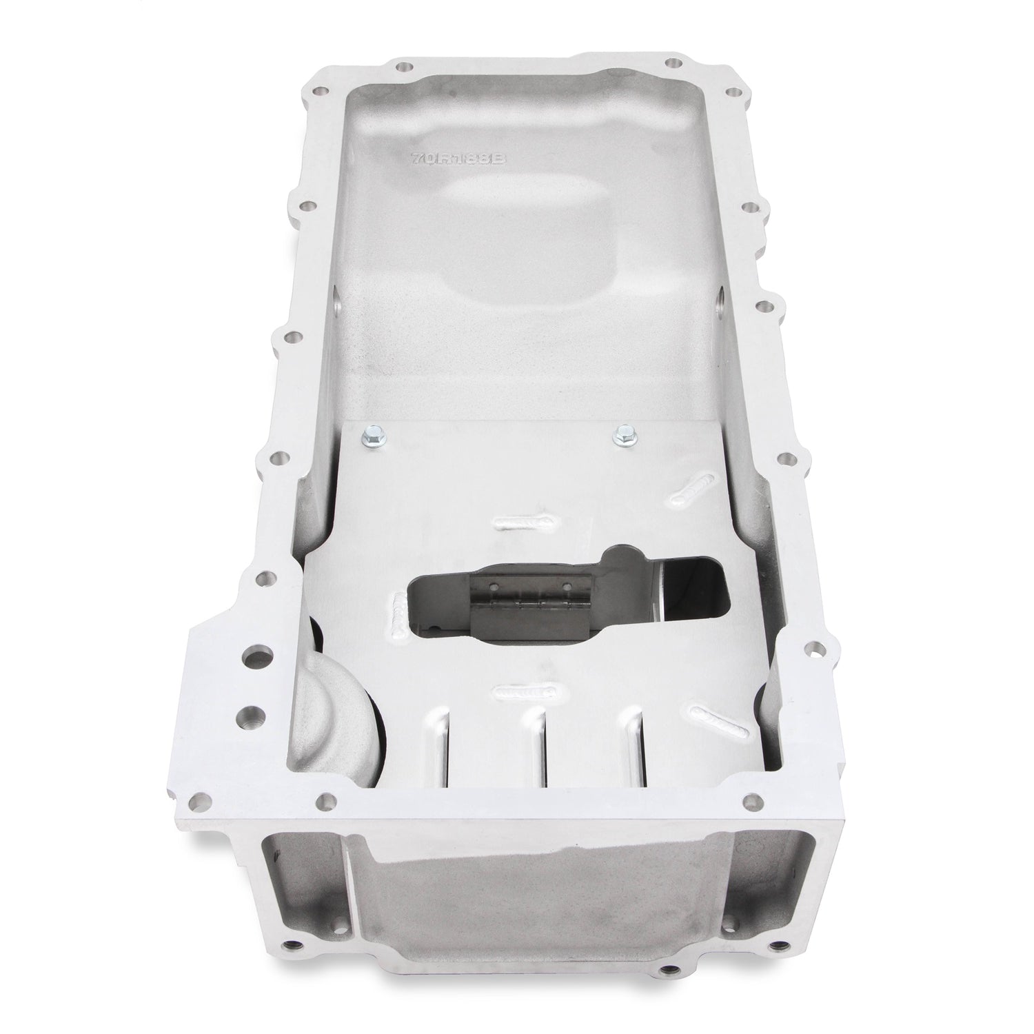 Description_MKT Holleys popular cast aluminum oil pans (P/N 302-3, 302-3BK, and 302-5) are designed to swap LS engines into trucks, muscle cars, and more, has just been brought to the next level. Vehicles that endure prolonged sessions of braking, turning, and accelerating need extra protection from oil starvation. Thats where the 302-12 oil pan baffle comes in. This oil pan baffle kit is designed to maintain proper oil level at the oil pump pick-up during vehicle accelerations, both lateral and linear. The baffle maintains the oil at the oil pump pick-up preventing loss of engine oil pressure during maximum cornering in a high-performance touring or road-racing, as well as under hard acceleration in drag racing vehicles. The baffle is fabricated from sheet aluminum joined by TIG welded joints. Directionally positioned one-way trap doors allow oil flow towards the oil pump pick-up but not away. This baffle is designed to be used in the Holley P/N 302-3, 302-3BK, or 302-5 LS Swap oil pans with the standard pickup, and is a drop-in replacement for the standard tray baffle. Developed for Holley by Improved Racing, a leader in oil control products
