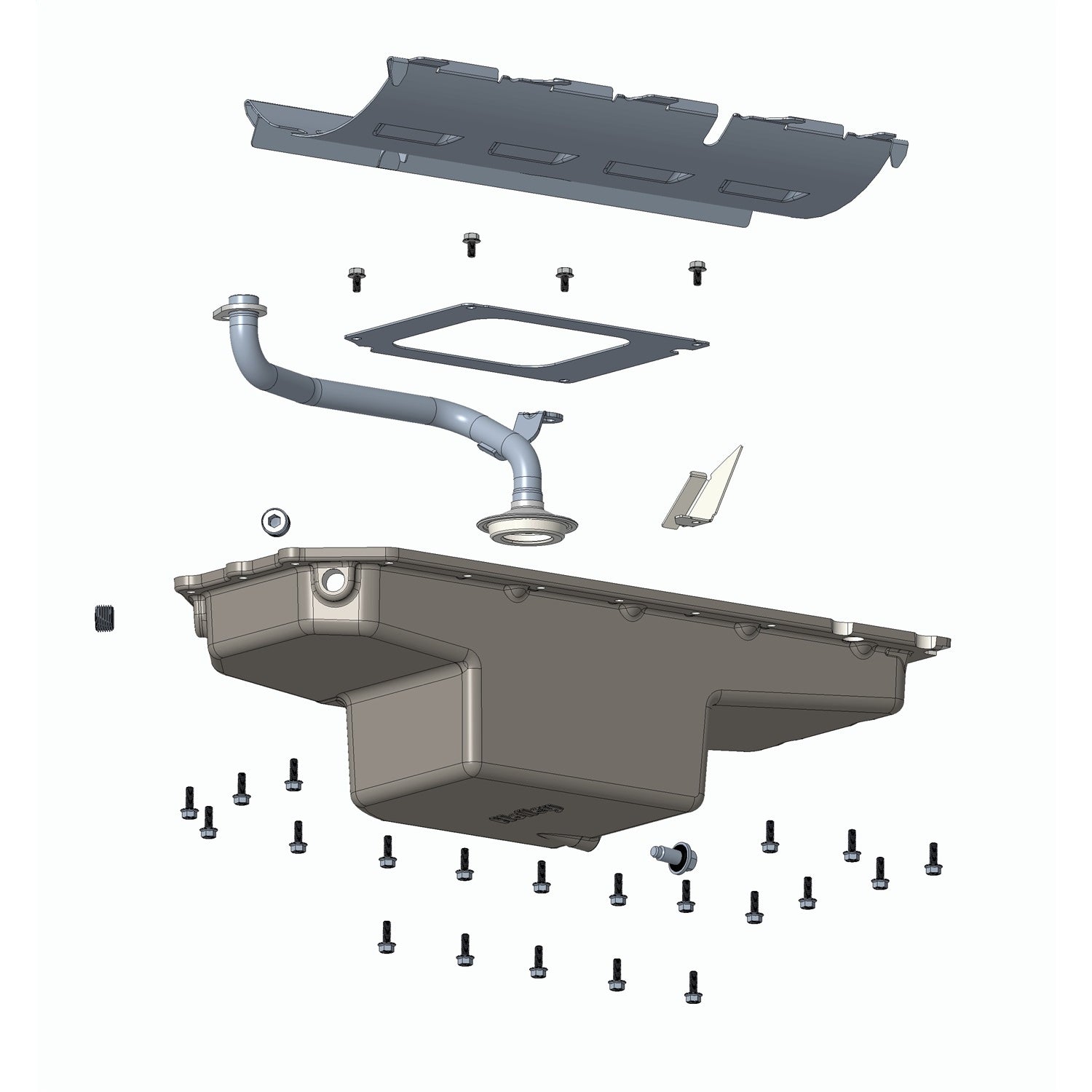 Complete oil pan kit That includes oil pan, pickup assembly, O-ring seal, windage tray, baffling & mounting bolts - no extras that must be purchased separately (i.e. gaskets, pickup, windage tray, bolts) |