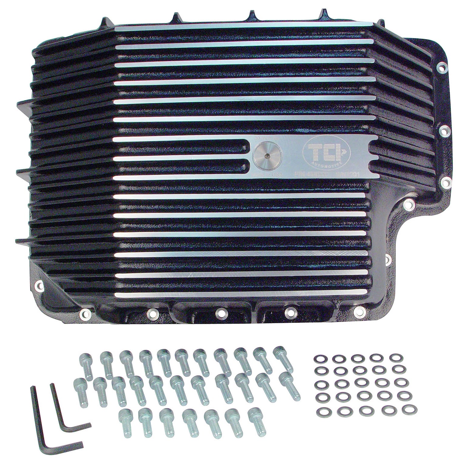 Description_MKT These premium cast, high-quality TCI Max-Cool Aluminum Deep Pans turn the ordinary into the extraordinary. A black powder-coated finish and the ability to hold a larger fluid supply increases the heat dissipation, therefore dropping internal transmission temperature by 20 to 30 degrees and elongating transmission life. These pans are built from aircraft-quality aluminum and feature added fins for improved cooling, while a magnetic drain plug keeps loose metal from being circulated through the transmission. A unique o-ringed (where applicable) sealing surface protects against leaks.Pan includes magnetic drain plug, 1/8" NPT port machined directly into pan, new stainless steel hardware and Allen wrenches.