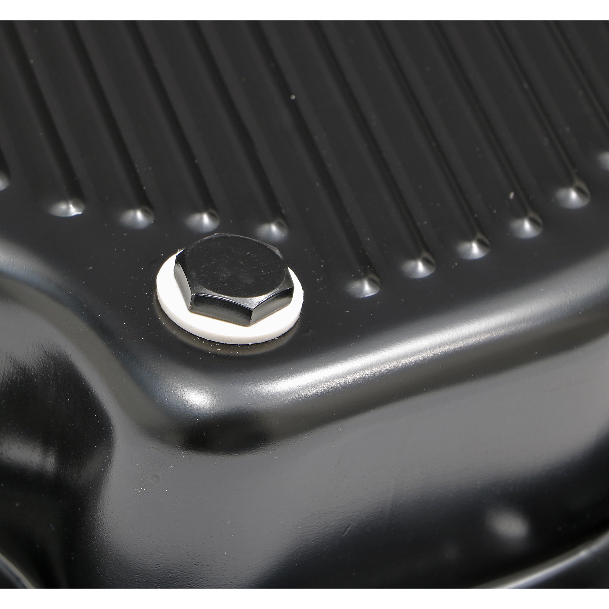 TRANS-DAPT PERFORMANCE PRODUCTS TH400, BLACK STEEL TRANSMISSION PAN; EXTRA CAPACITY (1-1/2 QTS OVER STOCK); 3 IN. DEPTH; FINNED BOTTOM |