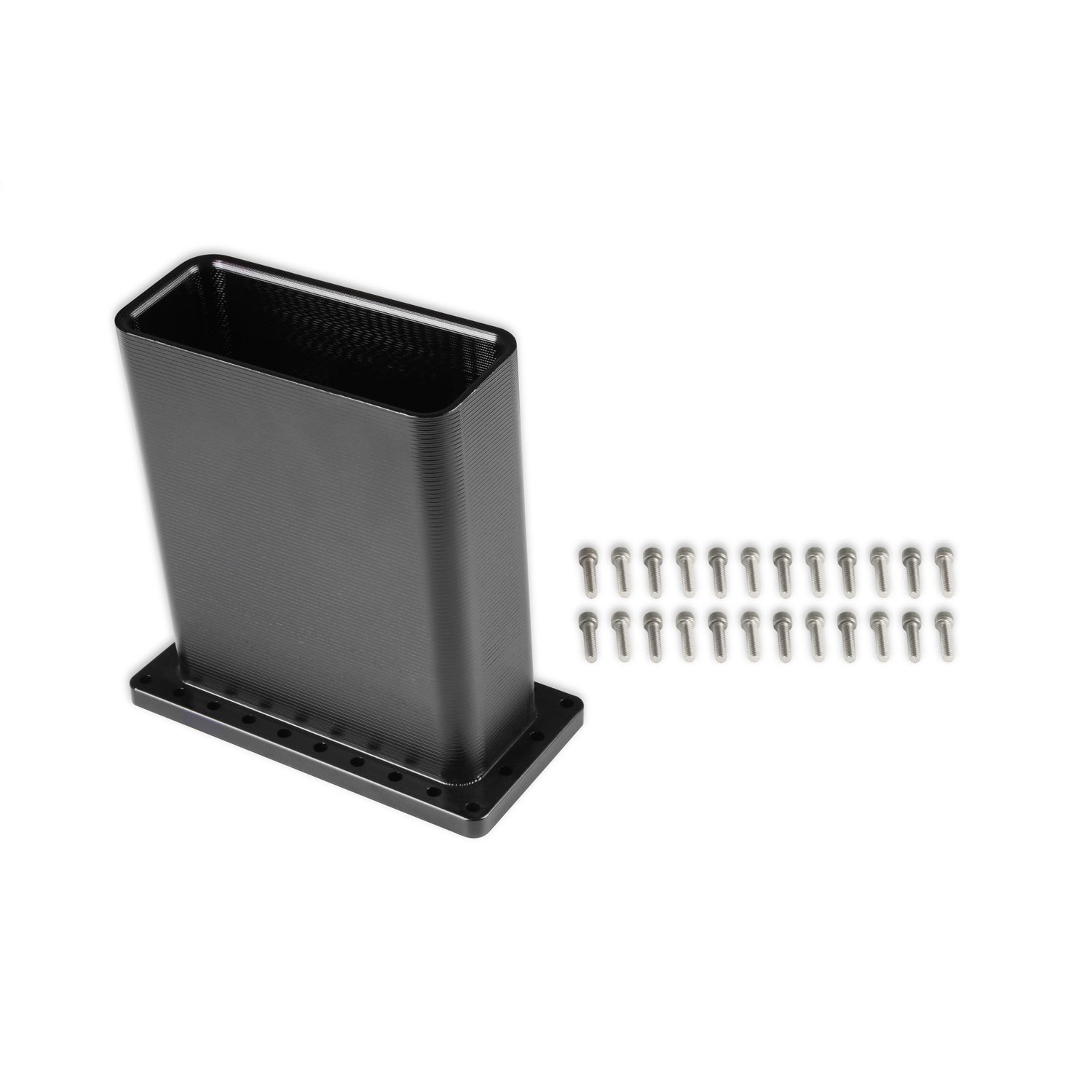 Description_FAB The 6061-T6 billet aluminum duct is available in a clear or black anodized finish