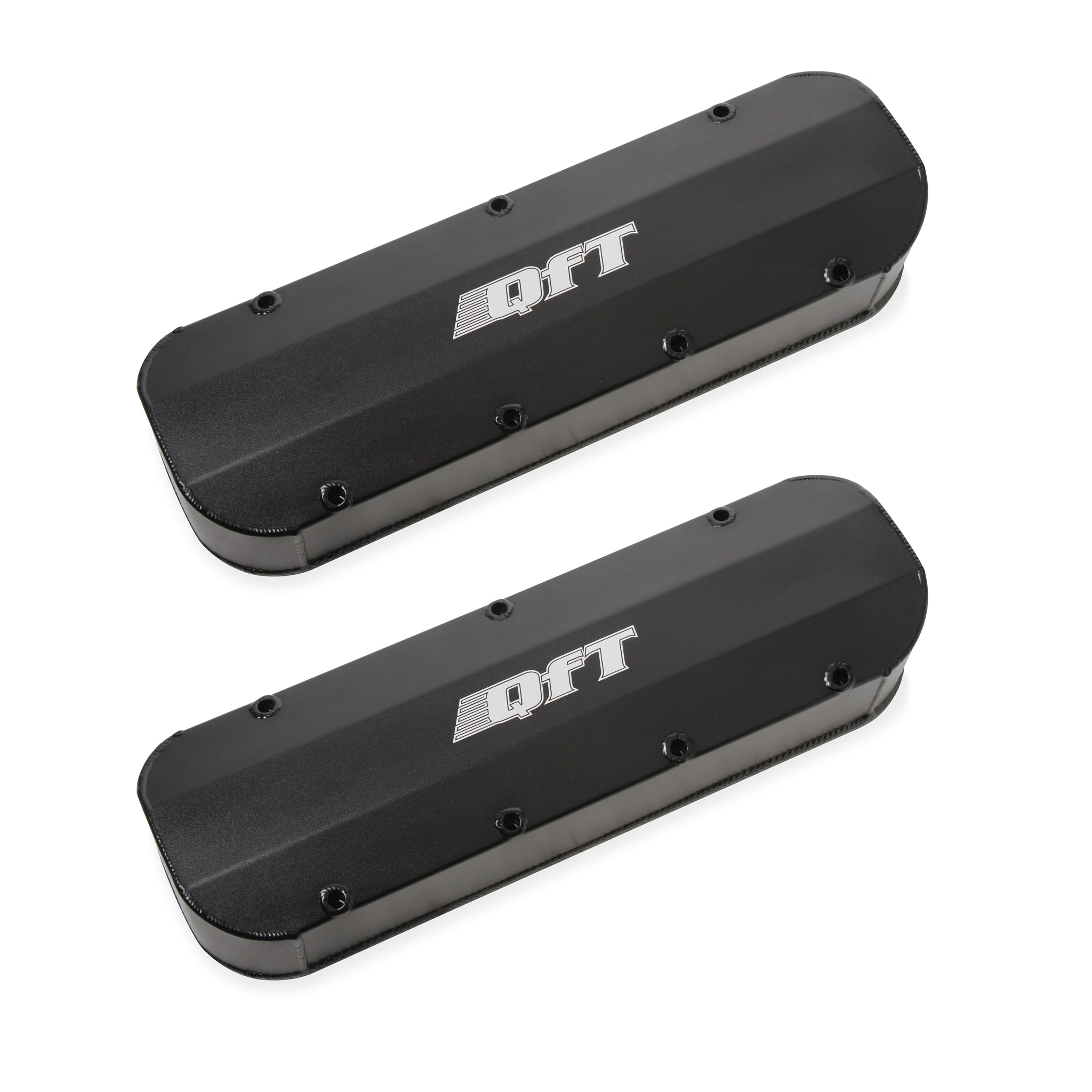 Description_EXT | QFT Fabricated Aluminum Valve Cover Pair Long Bolt w/o Breather Hole, Black, 1965-2000 Chevy 396-454 Big Block |