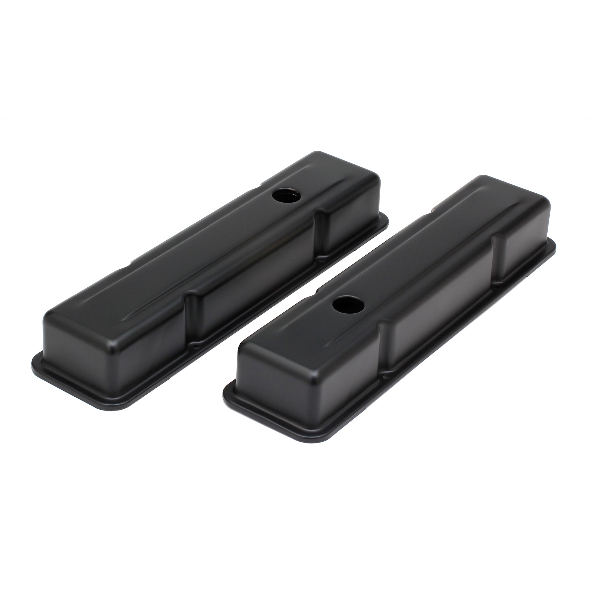 Trans-Dapt 8685 CHEVY 283-400 SHORT ASPHALT BLACK POWDER COATED VALVE COVERS- UNBAFFLED