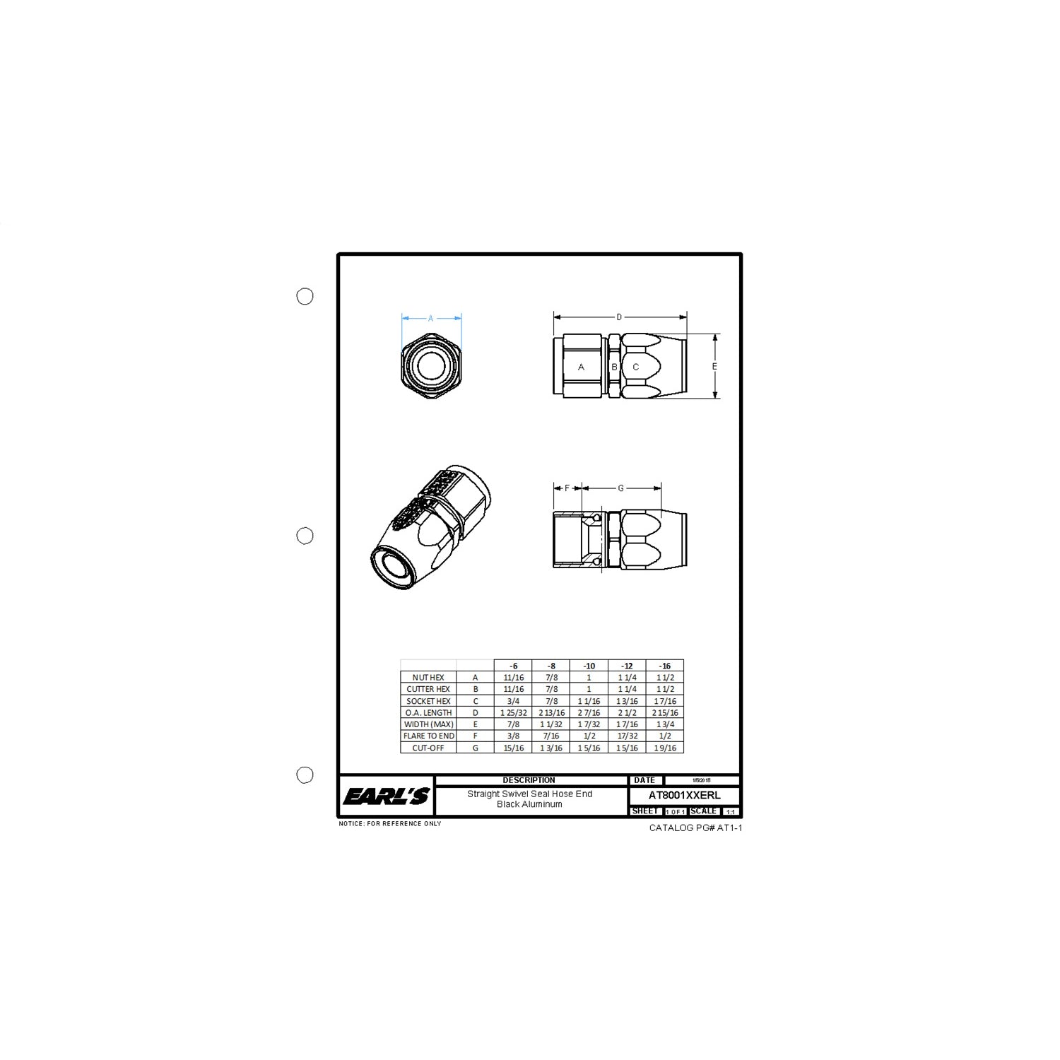 Earls AT800112ERL Swivel-Seal (TM) Straight AN Hose End