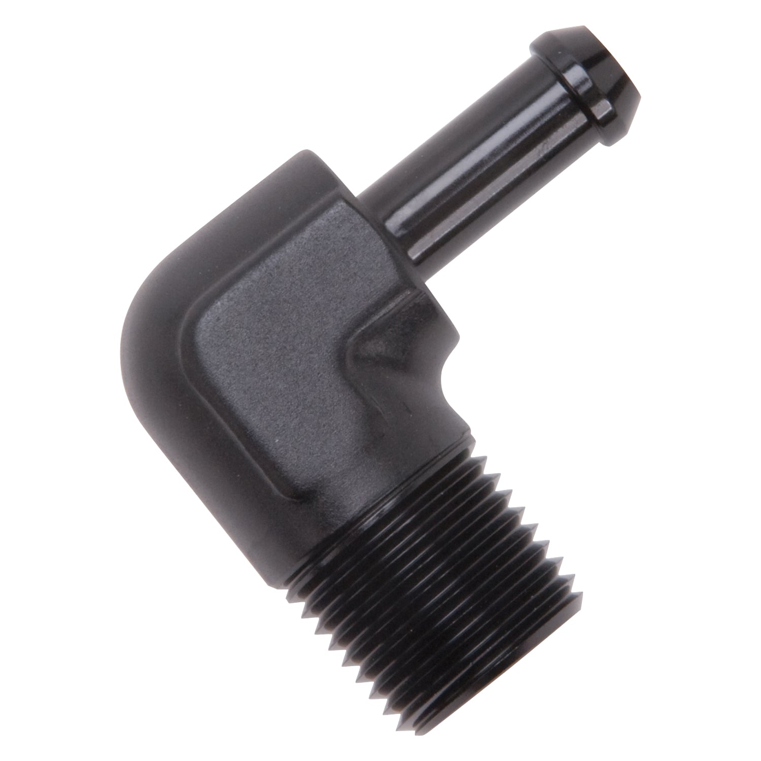 Edelbrock part #8169 heater hose end is designed to hold up to any plumbing task you have. This heater hose end is made from high quality aluminum to ensure they won't rust or corrode. Features 90 deg. end with 1/2" NPT and 3/8" Barb, black anodized finish.