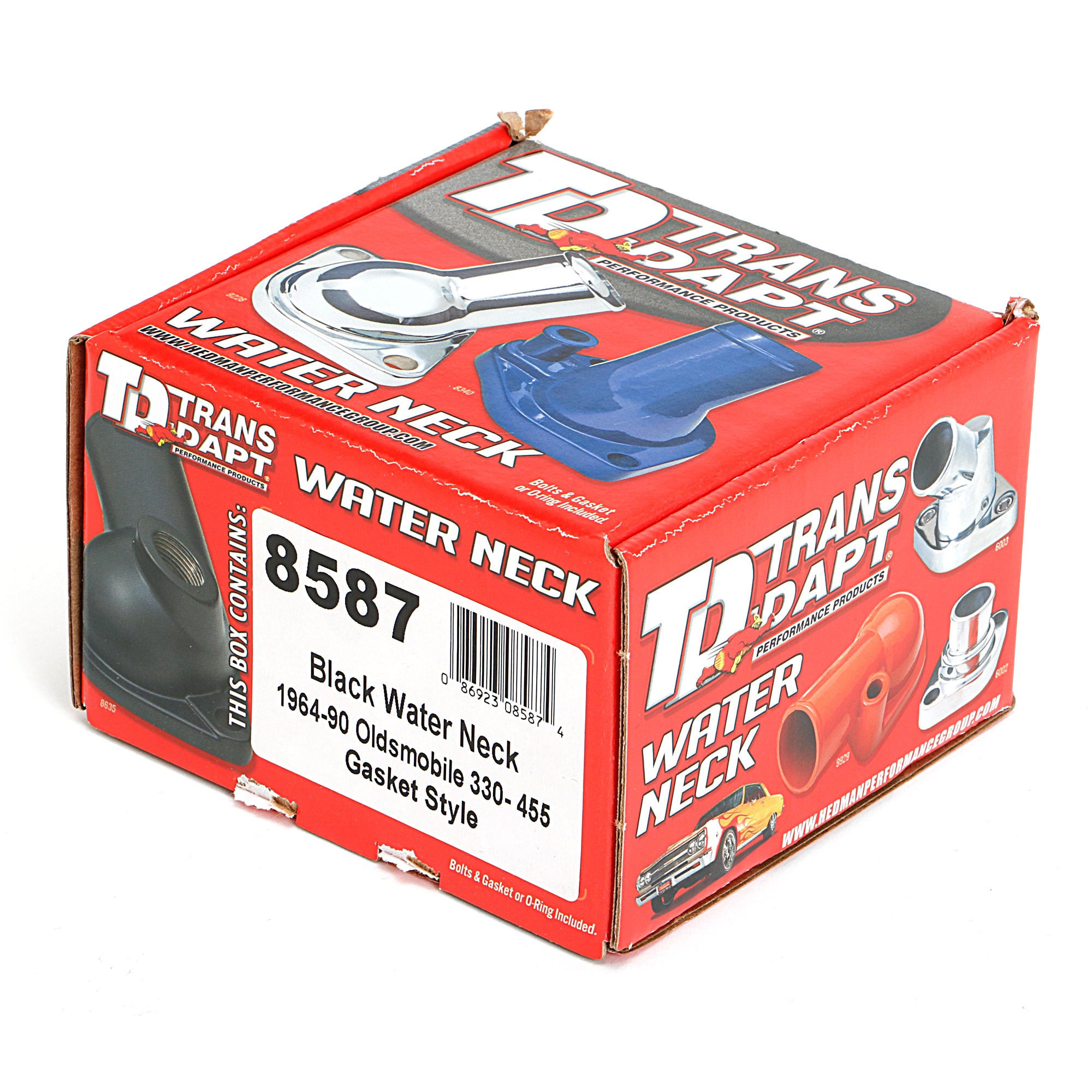 Trans-Dapt 8587 ASPHALT BLACK POWDER-COATED WATER NECK (THERMOSTAT HOUSING); OLDSMOBILE 330-455