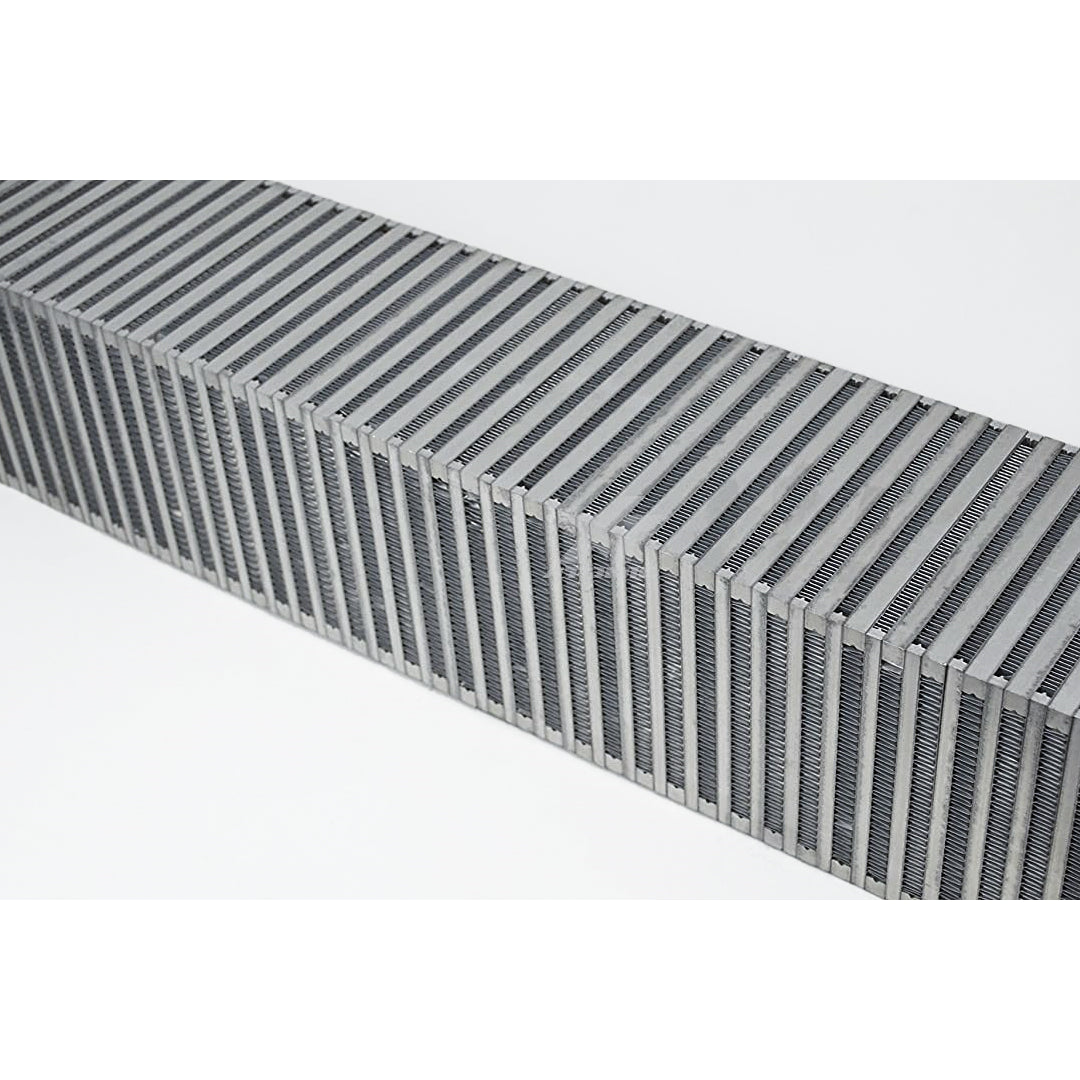CSF Bar & Plate Intercooler Cores are used by some of the most renowned tuning and performance companies in the industry. This 27" x 6" x 6" Vertical Flow Core is rated for 1400 WHP and the perfect fit for your custom high-performance intercooler. Each CSF Intercooler core is pressure tested at 120psi for maximum reliability in extreme boost applications. Hand-Built using jigs & fixtures for a perfectly straight core in a clean room using gloves inside the CSF factory to ensure proper brazing and a clean surface for future welding. Featuring a multi-louvered high precision staggered fin design (for both ambient and pressure sides of the core) for the best heat transfer possible.