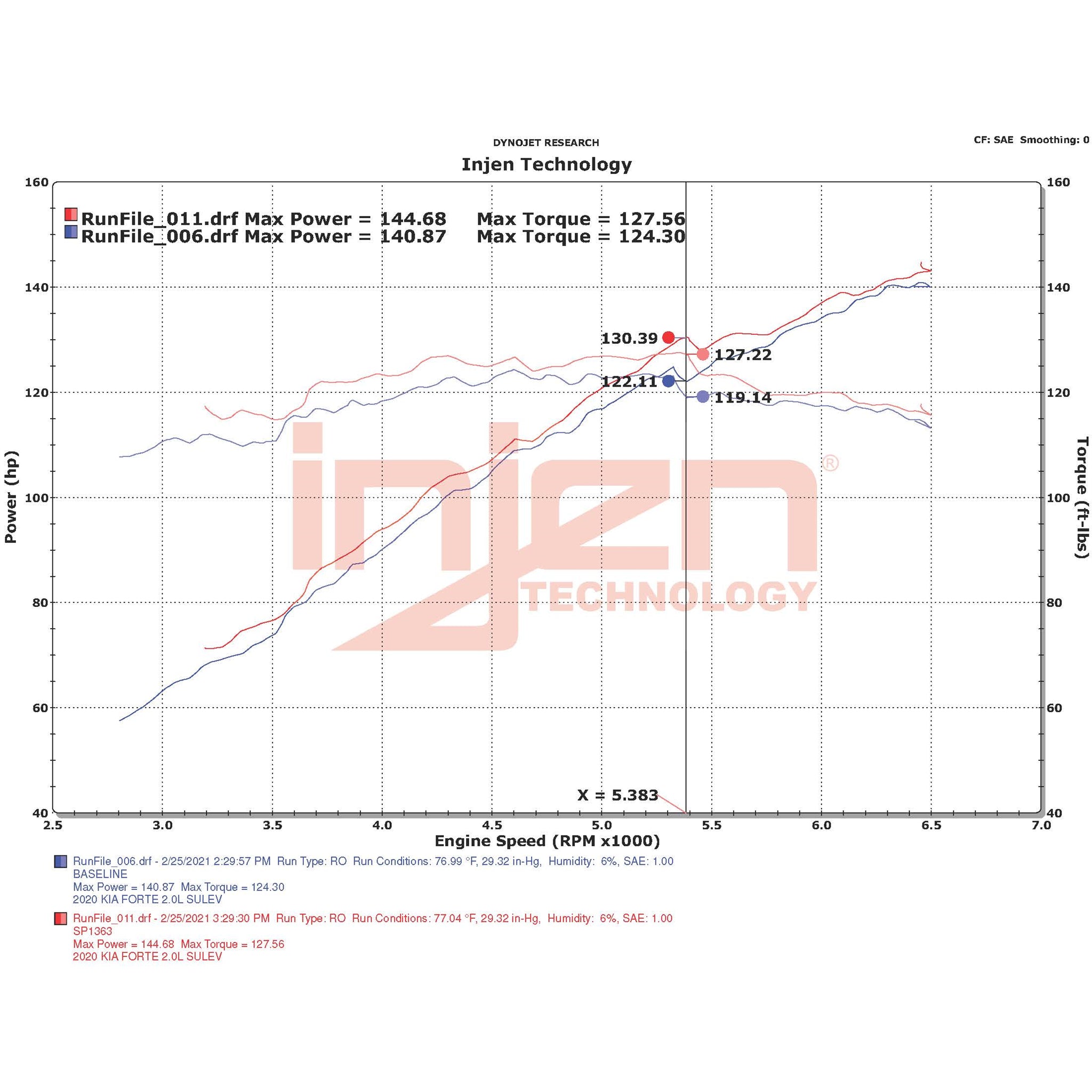 The soul of this intake is found within our 6061-T6 aluminum air intake tube that provides a smooth uninterrupted path for highly efficient airflow. Our engineers have painstakingly designed the intake to provide the highest levels of safe power, along with clean aesthetics that will impress every time you open your hood. In addition to the impressive power increase, the Injen team has ensured that a safe Air fuel (A/F) ratio has been maintained throughout the power band. |