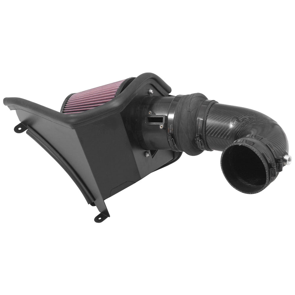 The K&N AirCharger 63-3099 air intake system replaces the restrictive factory air filter and air intake housing in some Chevrolet Camaro ZL1 models (see vehicle applications). K&N intakes are designed to dramatically reduce intake restriction as they smooth and straighten air flow. This allows your Camaro ZL1 engine to inhale a larger amount of air than the factory air filter assembly. More air means more usable power and acceleration throughout the engine's RPM range. The 63-3099 air intake tube is made almost completely out of ultra-lightweight carbon fiber. Included is a K&N high-flow air filter and a heat shield that directs cooler air into the custom molded intake for a guaranteed power gain. The oversized air filter can be used for up to 100,000 miles before servicing is needed depending on driving conditions. This air intake is relatively easy to install using commonly available tools. This air intake cannot be sold in California. It is not legal for use in California or other states adopting California emission standards.