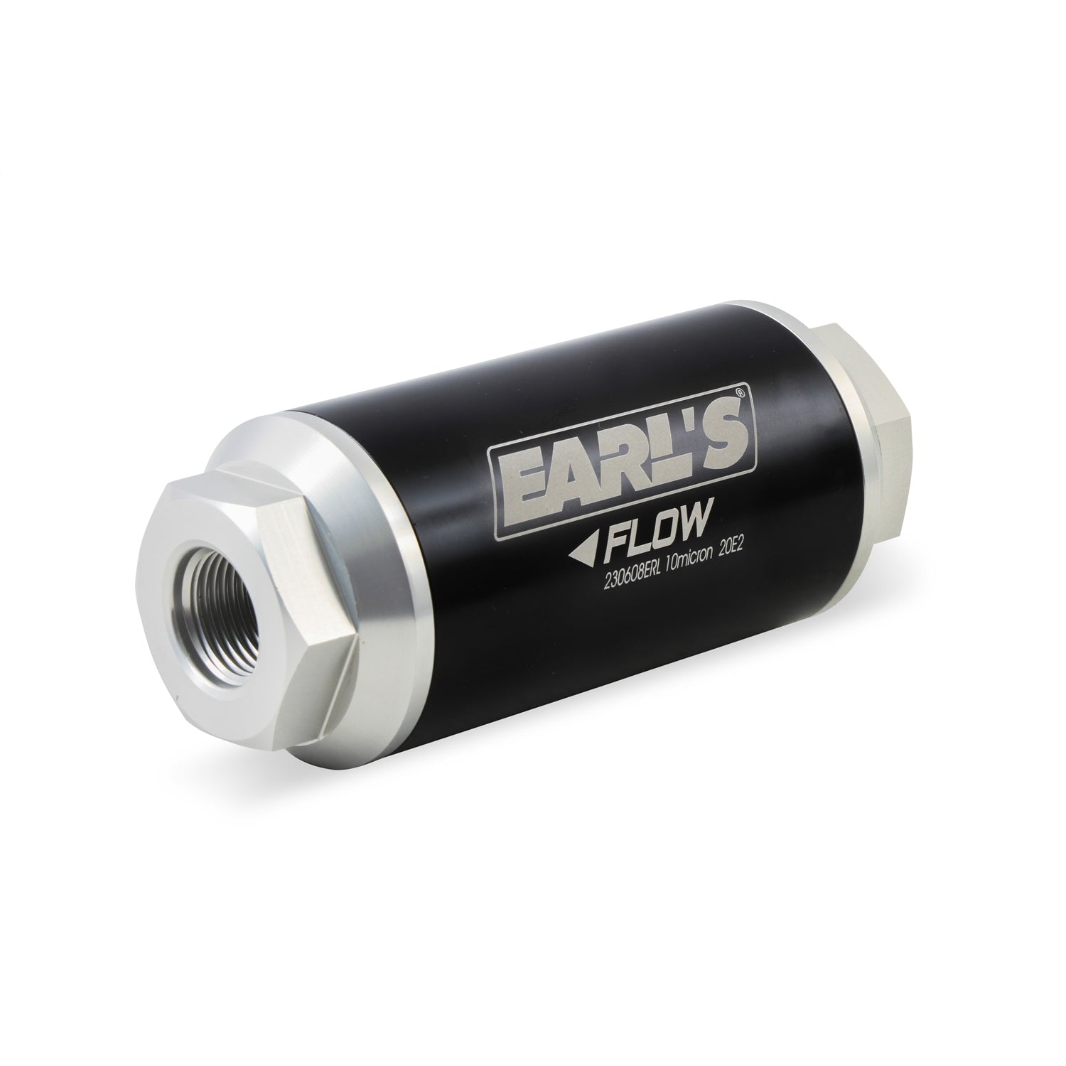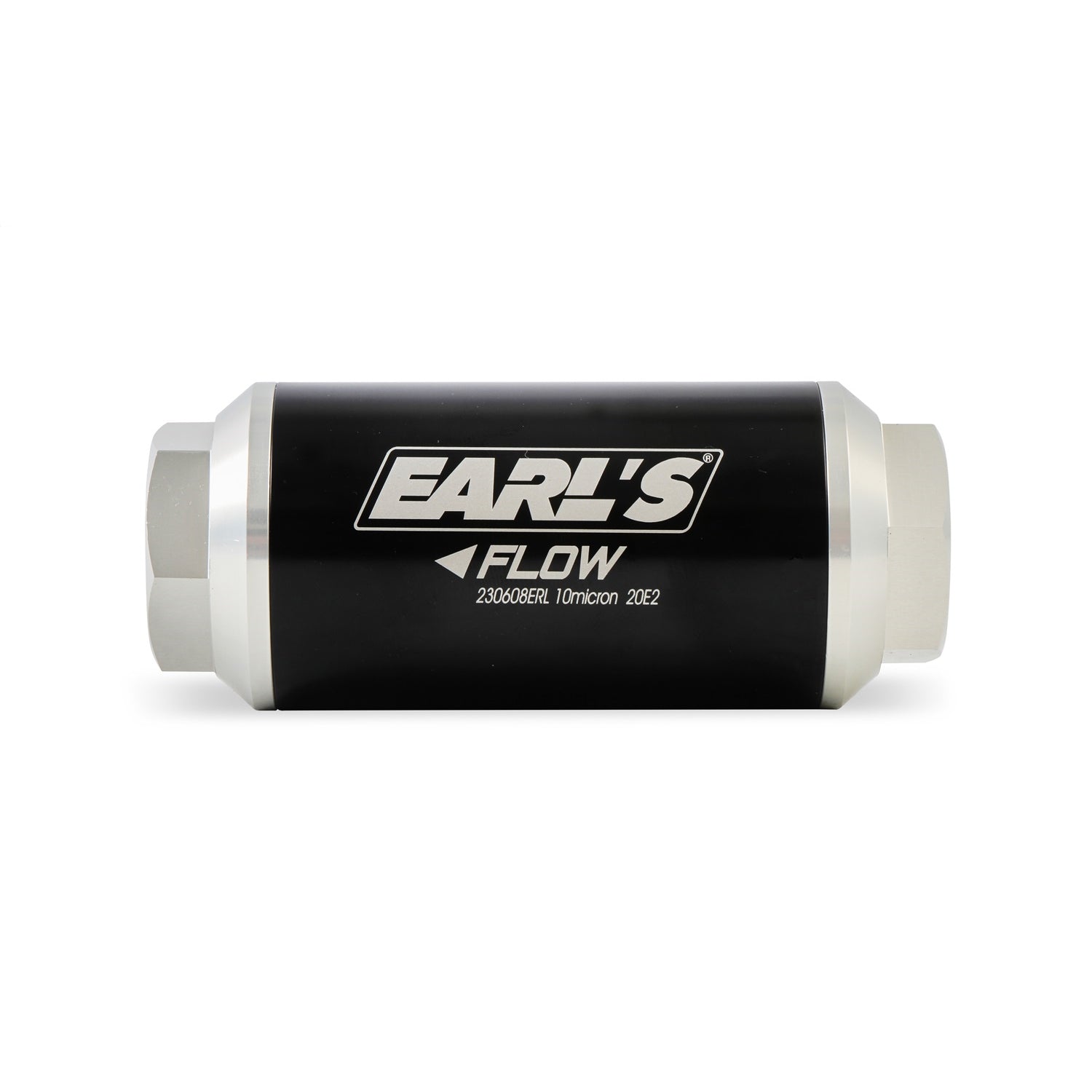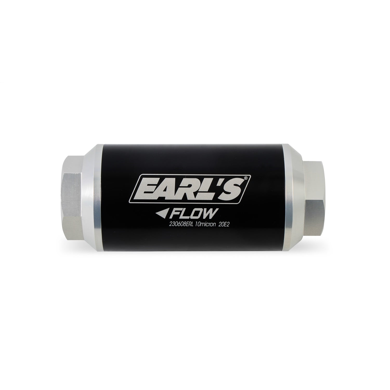 Earl's new billet in-line fuel filters are precision CNC machined from 6061-T6 billet aluminum for strength and durability. The body is black class 2 brite dip anodized and the end caps are class 2 clear anodized for corrosion resistance and a clean, modern look. Earl's billet fuel filters are available in 10, 40 &100 micron ratings and in 100 & 175 GPH flow ratings. Replacement elements are available.