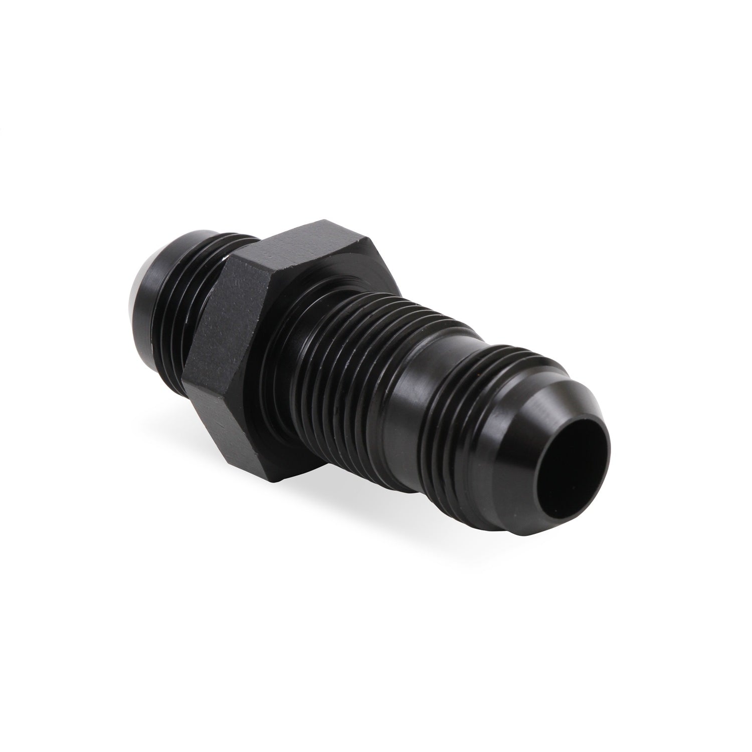 Description_EXT | Straight Aluminum AN Bulkhead Fitting; Size: -10AN Male to -10AN Male Bulkhead; Anodized Black; Bagged Packaging; |