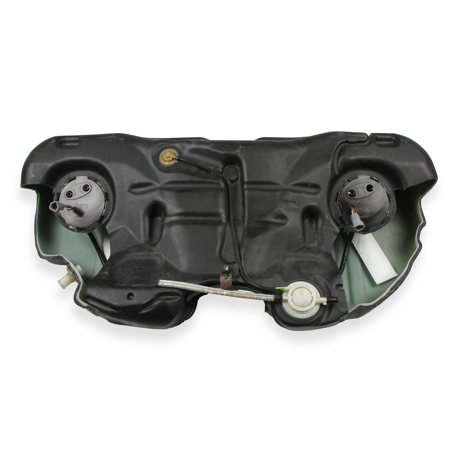 The new Holley fuel system for the 2005-20 Challenger/Charger is a true dual pump design. The saddle tank design in the late model Challenger, Charger, and other musclecar platforms can be a limiting factor for road course duties. Most aftermarket systems suggest that you have to have 1/2 to 3/4 of a tank of fuel to race without potential fuel pressure loss in the turns.Holley has designed a system with a 255 LPH pump for both sending units in the fuel tank. The design eliminates the factory jet pump and includes a HydraMat on each new pump module to prevent fuel starvation with only 2 gallons of fuel in your tank. Supports up to 1100 EFI or 1400 Carb HP (@ 60 PSI at 13.5 Volts / 16.9 AMP Draw)The OEM jet pump diverts more than 20 GPH to sweep fuel from the secondary side since this is the only way to access fuel from this side. This fuel is only recycled for the jet pump and takes away from useable fuel delivery to the engine. There is no functional use for the jet pump in the Holley system since we return fuel from each regulator directly above each of the HydraMats.The amazing HydraMat® is Holley's patent pending design that solves the problems associated with traditional fuel pick-ups in stock fuel tanks as well as racing fuel cells. During hard cornering, acceleration, stopping, inclines, and low fuel conditions fuel runs away from the fuel pick up which introduces air into the system resulting in poor engine performance and even stalling. HydraMat is the solution! Surface tension and fluid wicking are the secrets of the HydraMat, giving it the amazing ability to draw from nearly any area that has contact with fuel and then store it in its internal reservoir. As an area of the HydraMat is uncovered, the tiny pores of the media seal off through surface tension, forcing fuel to be contained in the reservoir and drawn from other areas of the mat where fuel continues to be available.