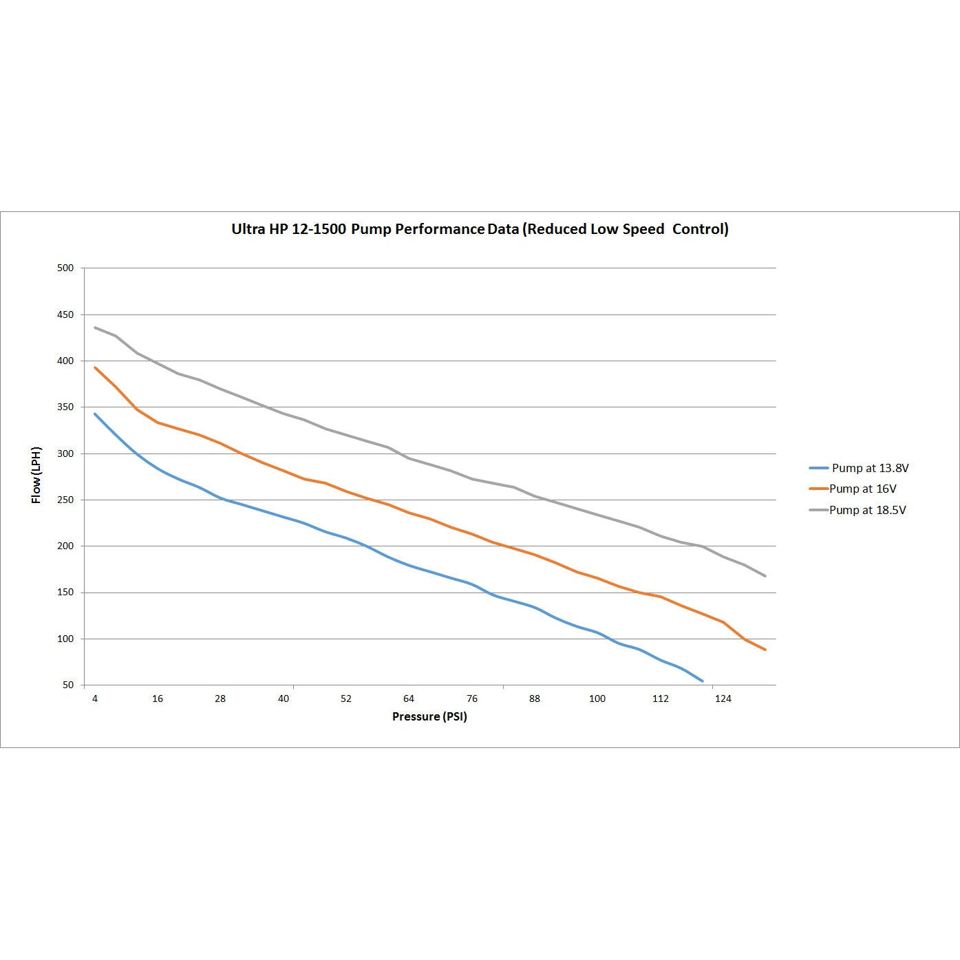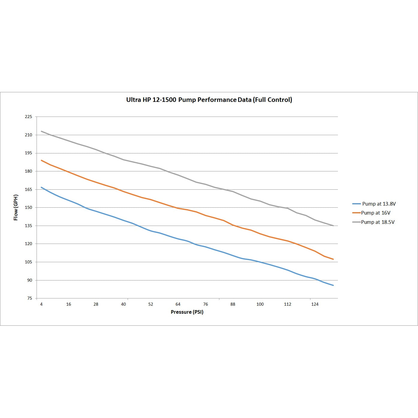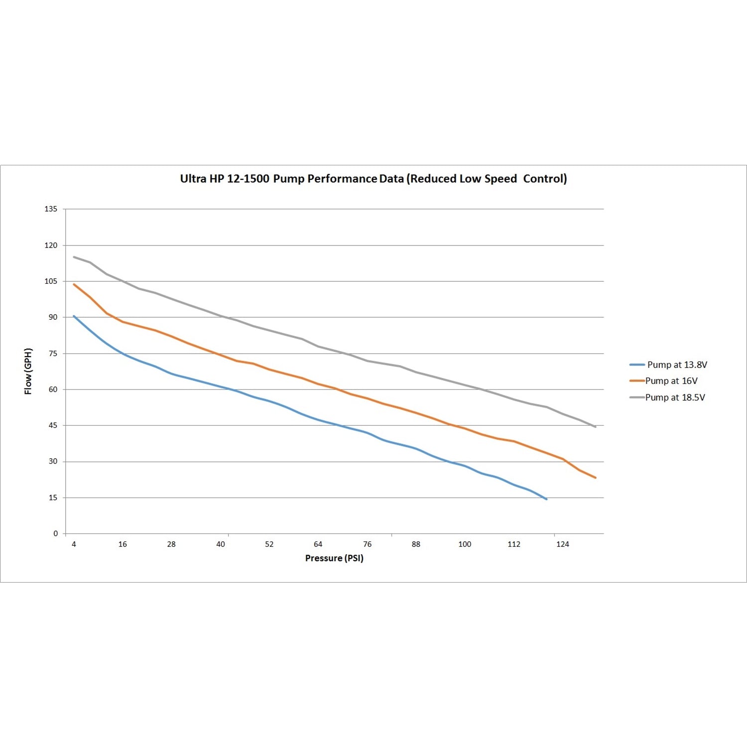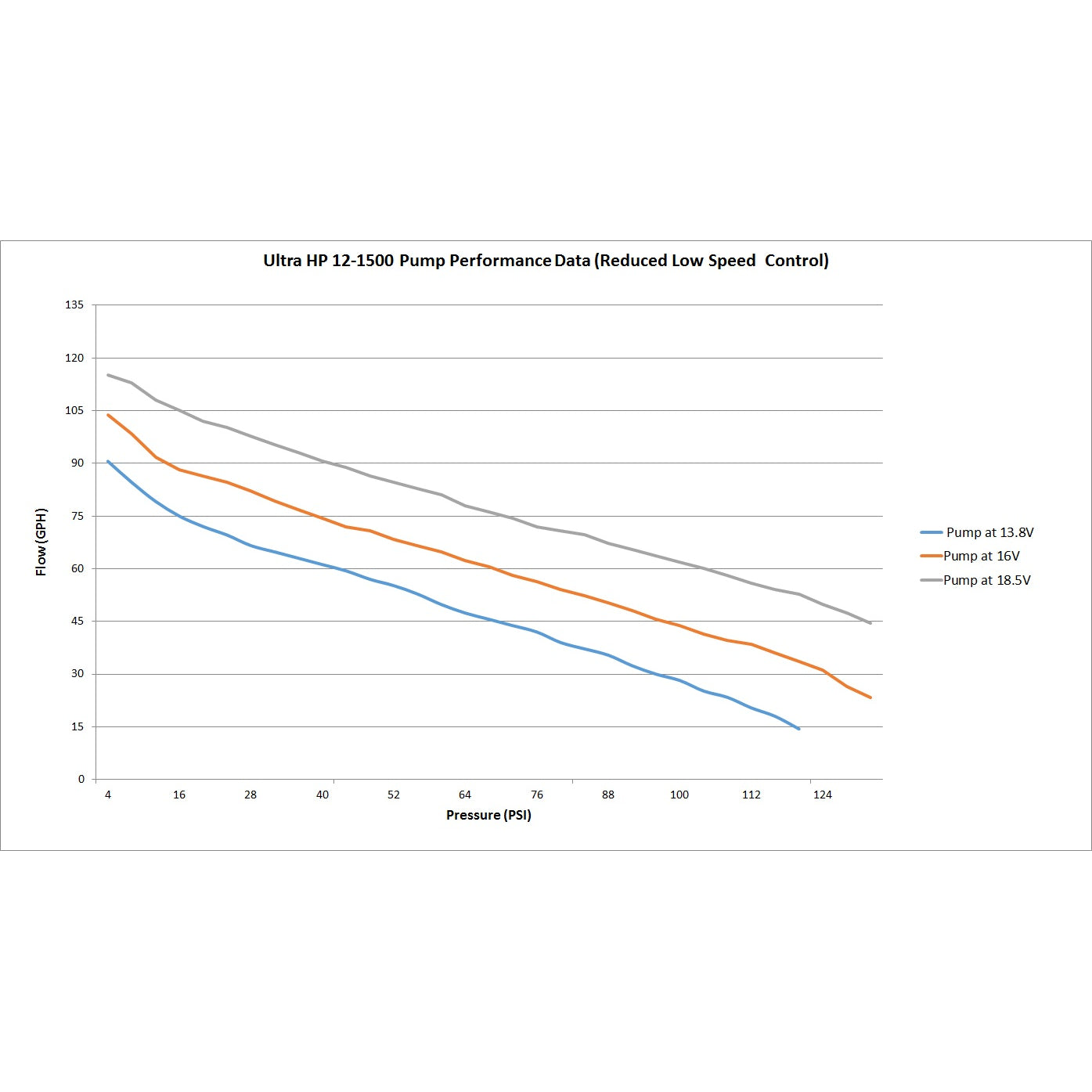 High flow and high pressure with low amperage draw |