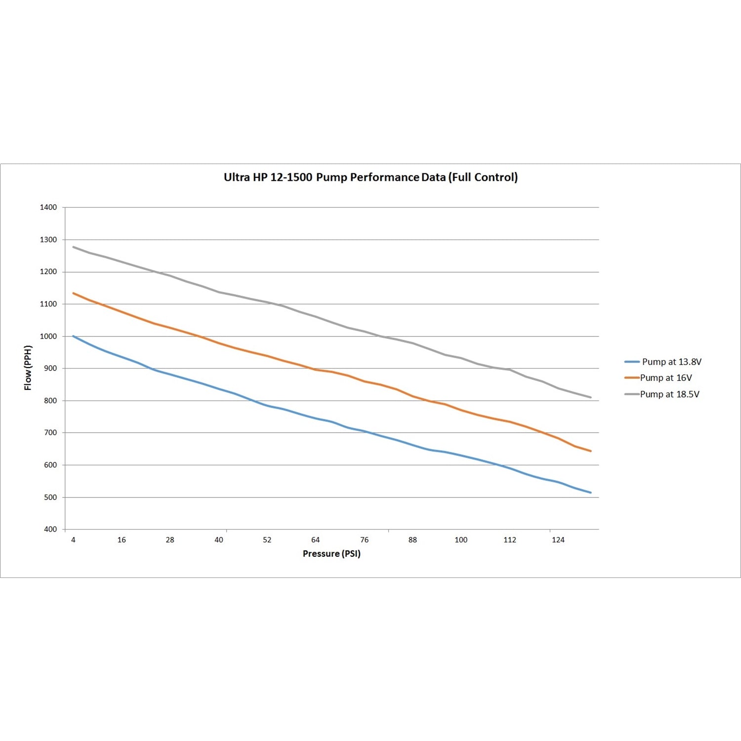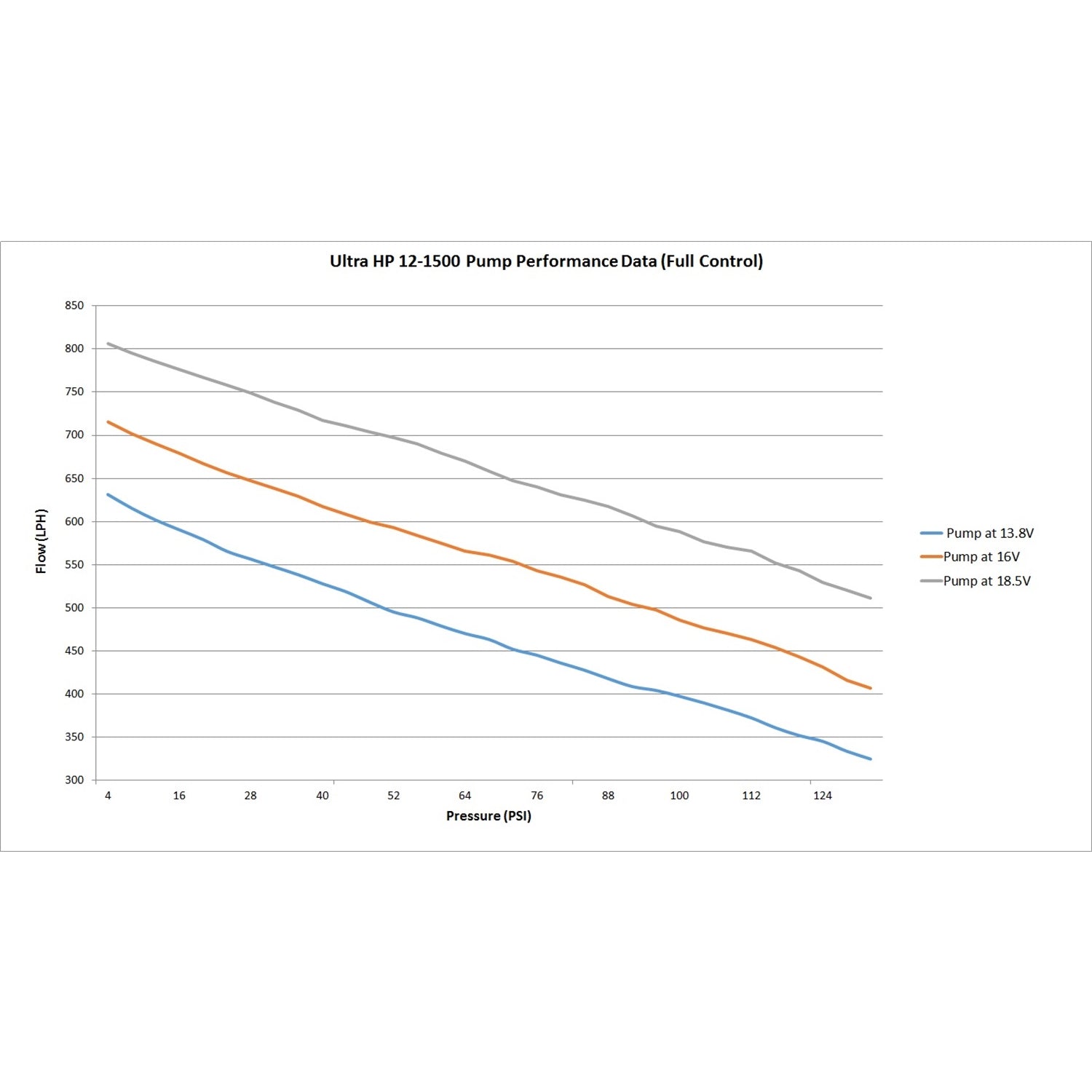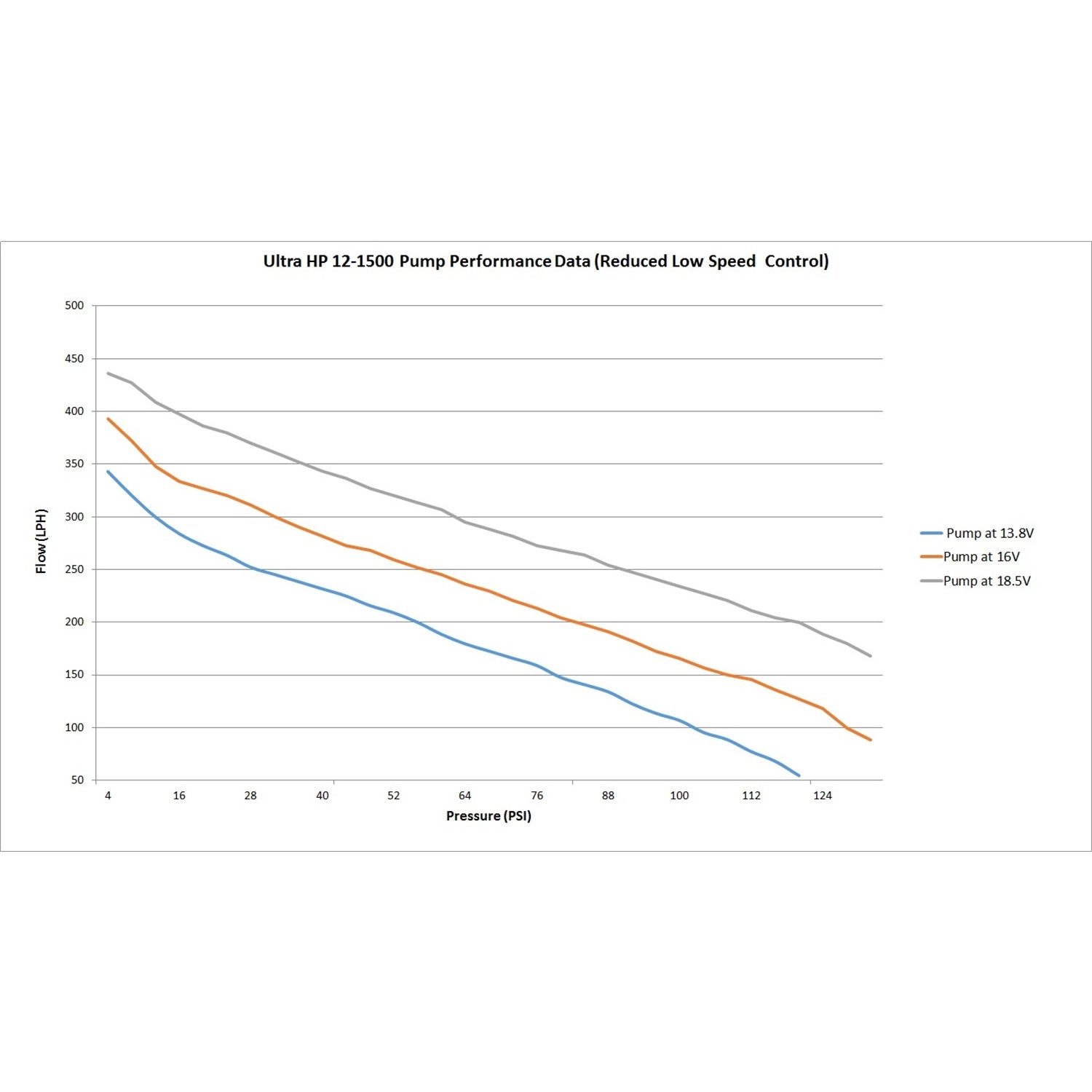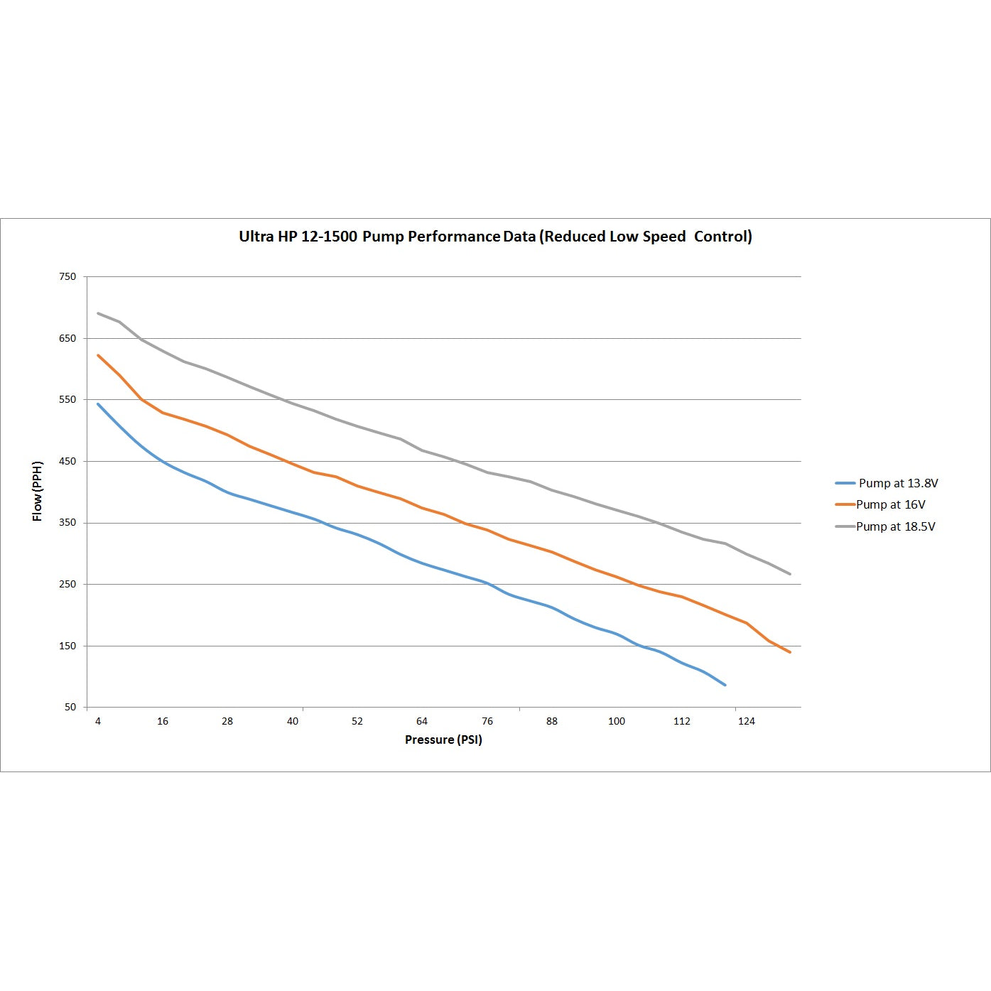 High flow and high pressure with low amperage draw |
