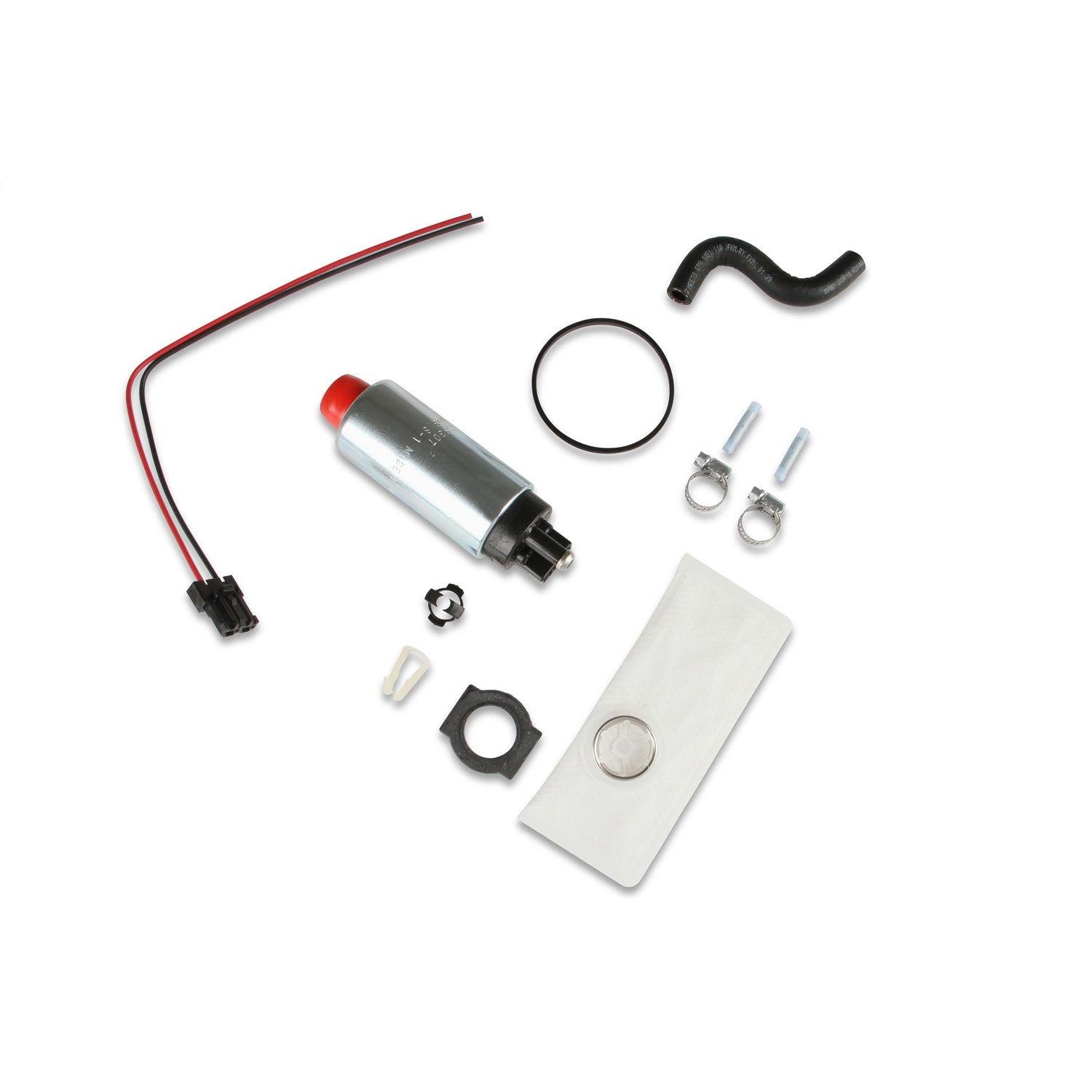 The Holley line of high output in-tank electric fuel pumps is available in flow ratings of 190 and 255 liters of fuel per hour. A 155 liter per hour Mustang pump is available along with 255 liter per hour rated pumps for "forced induction" applications. These particular pumps flow significantly more fuel at high pressure. For example, at 80 PSI the standard 255 lph pump will flow around 132 liters (35 gallons) per hour. At the same 80 PSI the equivalent forced induction pump will flow over 210 liters (50 gallons) per hour. Holley in-tank electric pumps utilize a proven geroter design. The outside dimensions, however, are compact enough to fit existing hanger assemblies, without modification. Coverage includes most popular Ford, General Motors, Chrysler and import applications. These are complete fuel pump kits and include all accessories and installation instructions. Also includes is an inlet filter that meets or exceeds original equipment specifications and provides improved filtration and durability.