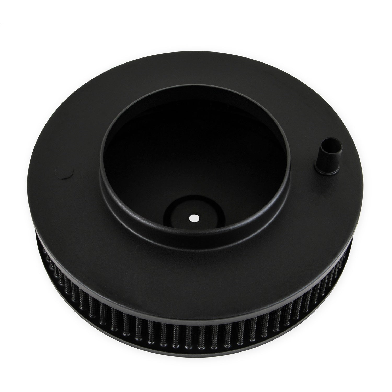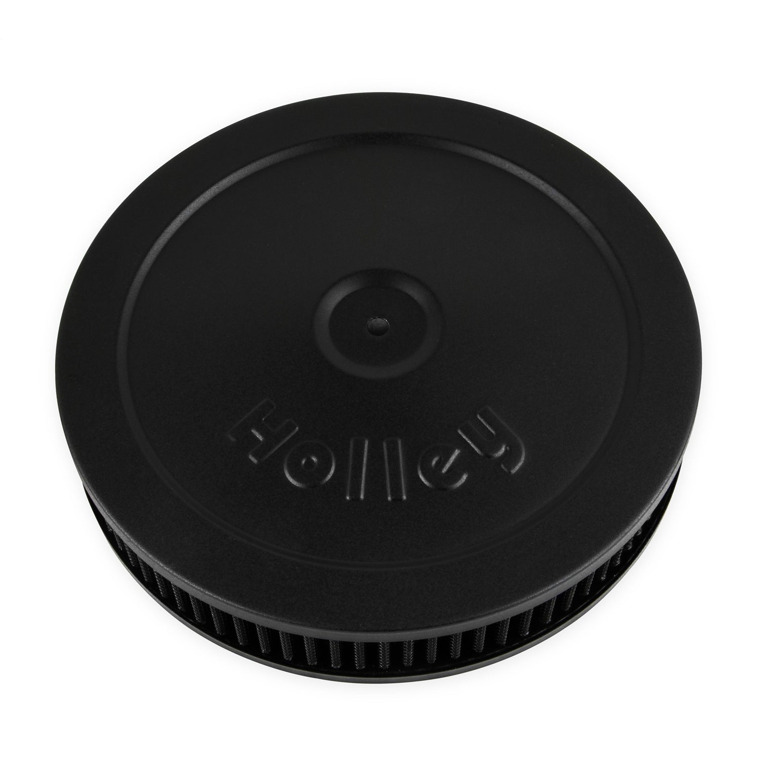 Holley branded 10 in. Flat Base Black Finish Air Cleaner assembly with black reusable gauze filter element