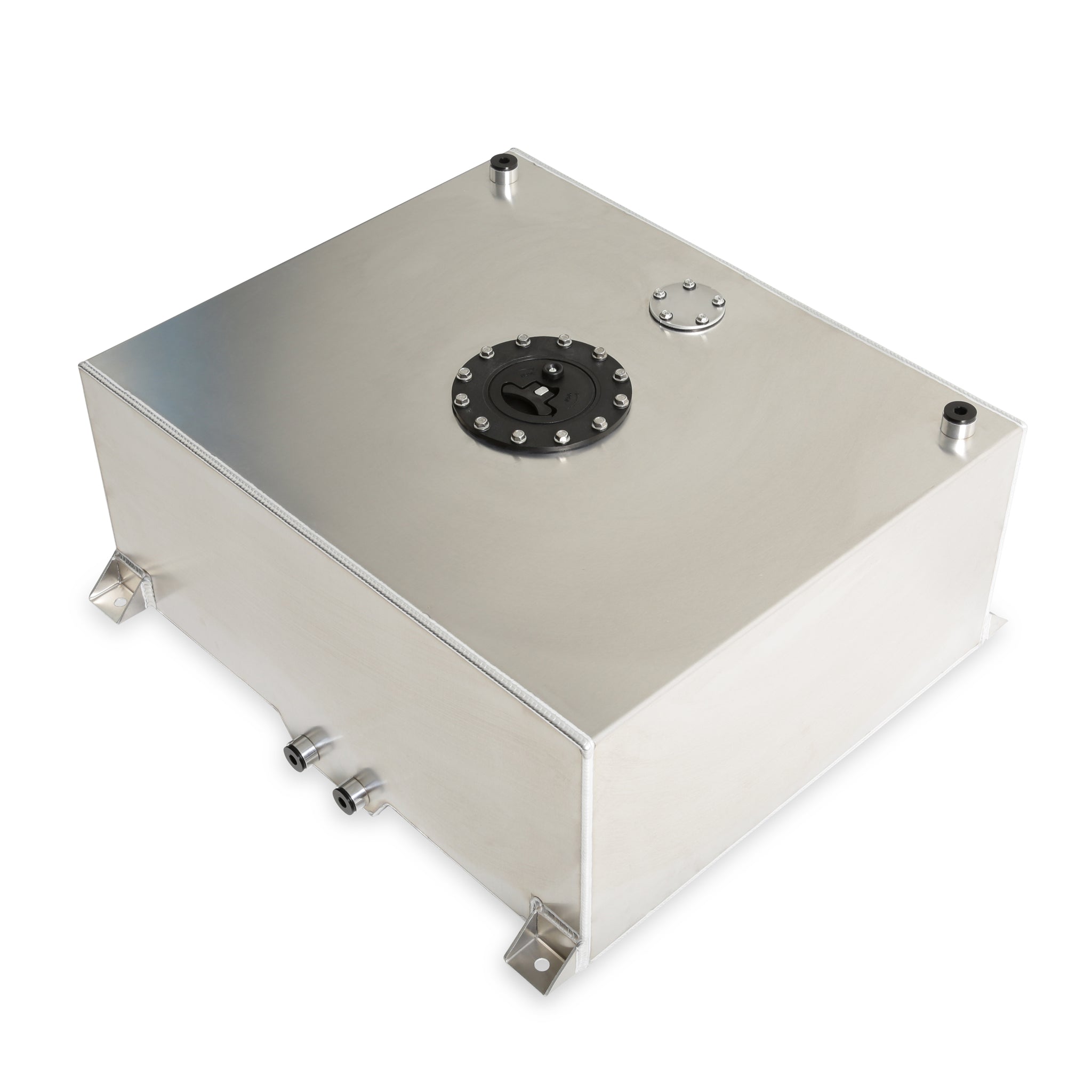 Holley Aluminum fuel cells come in a several variations for nearly every race application. They are offered in both flat bottom and rear sump variations to prevent fuel starvation under heavy acceleration. These fuel cells feature -10AN ORB fittings on the feed, return and vent ports, for high flow support and easy plumbing. They are made from 2.5mm thick 5052 TIG welded aluminum, with triangulated mounting tabs for added support and long-term reliability. The Holley aluminum fuel cells contain anti-slosh foam that is pre-cut to accept Holley fuel level senders. This foam is not E-85 compliant and should be removed if that fuel type is used. Compatible with the single and dual in-tank fuel pump modules.