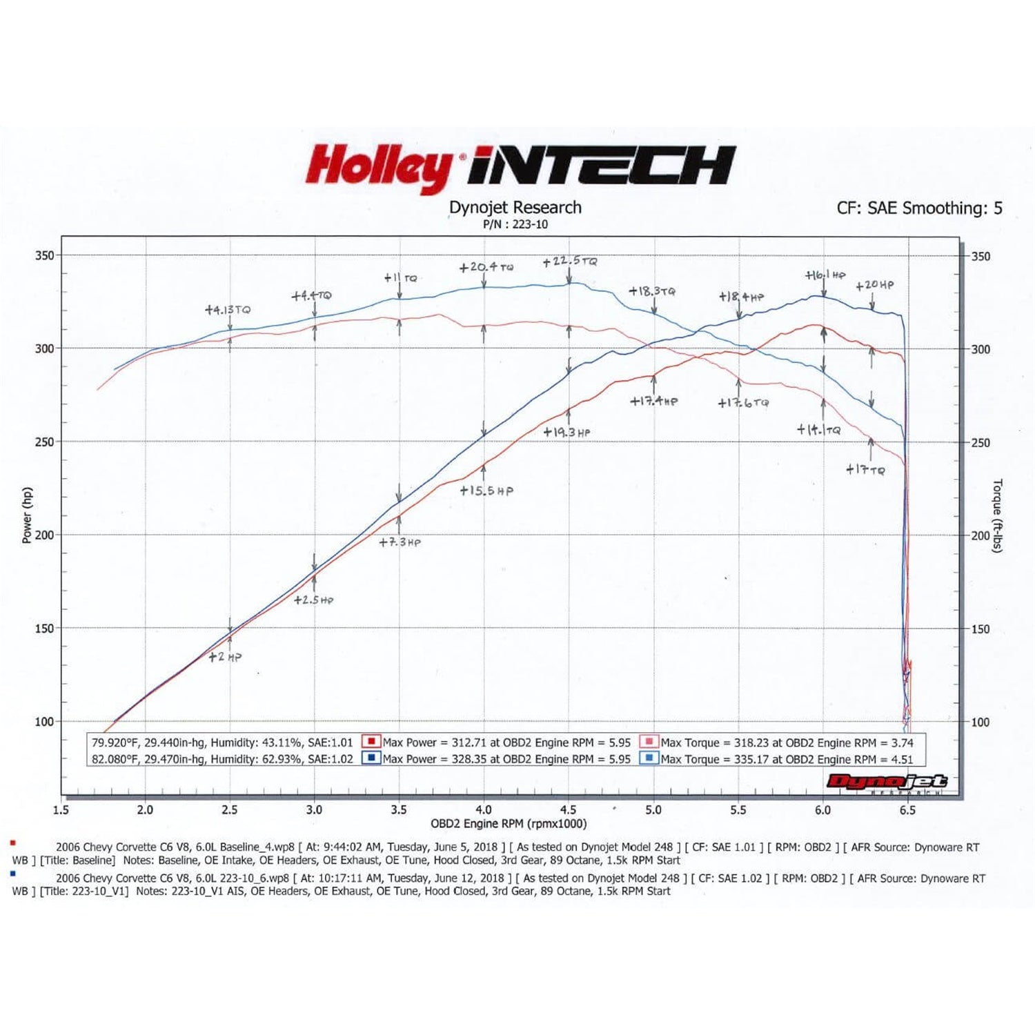Description_MKT | Holleys iNTECH cold air intake brand represents the highest degree of technology, performance and style for late model cars, trucks and SUVs. This system is designed for the popular 2005-07 Chevy Corvette C6 with the LS2 V8-6.0L and produced +20HP and +23 lb. x ft. torque at the rear wheels with a very broad power curve. This iNTECH intake features a unique dual filter "Hammerhead" intake tube that provides maximum air flow and velocity to feed your LS2. The large, high flow, washable and reusable 4-layer dry air filters eliminate the use of filter oils that may damage MAF sensors and set off check engine lights. The use of factory mounting locations makes for a simple installation. The tube design is styled to match the engine compartment of your vehicle for a stealthy appearance. For those who love the look and performance of carbon fiber, we now offer an optional real carbon fiber cover (P/N 223-07-1) for the 223-10 Holley iNTECH cold air intake that really puts an aggressive yet elegant look to your Corvette. |