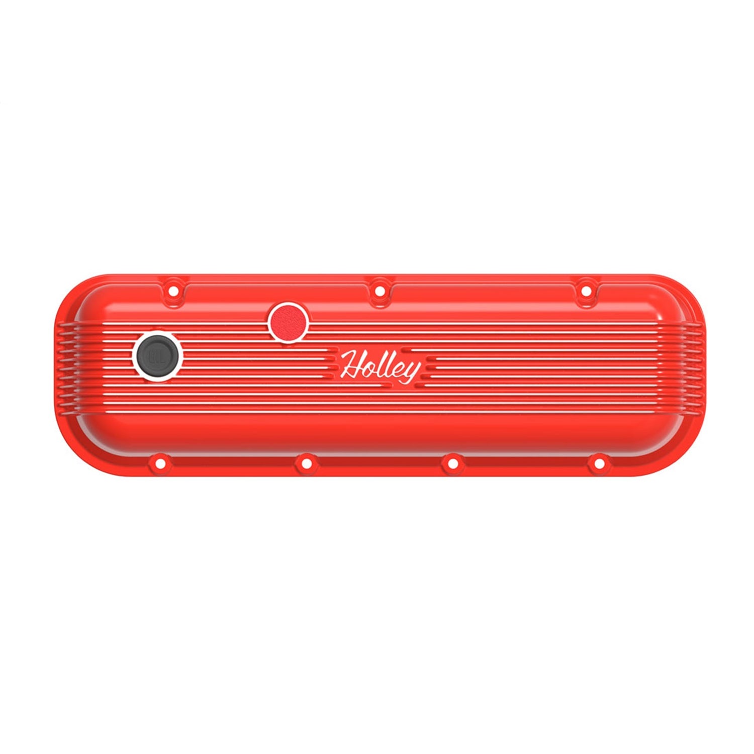 Description_EXT | Vintage Series Valve Covers; Die-Cast Aluminum Finned Design; Emission Provisions Punch Out; w/Perimeter Bolt Pattern; Holley Red Machined Finish; |