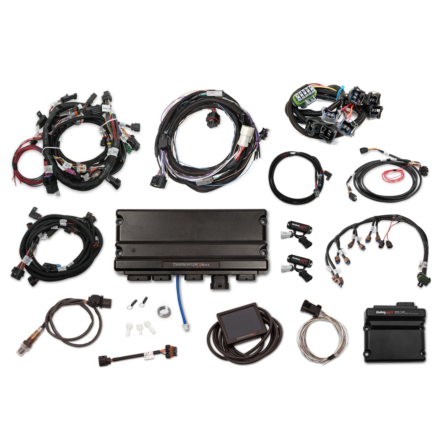 Terminator X and X Max Coyote systems supports Ford Coyote platform with Ti-VCT.Terminator X features real-time fuel learn, high impedance injector drivers, integrated 1bar MAP sensor, and 4 programmable inputs and outputs. These are ideal for electric fans, boost control solenoids, progressive nitrous control, and much more. Terminator X ECU comes fully loaded with base maps for common Coyote engine combinations to get you out of the garage and on the road/track fast. The included 3.5 in. LCD touch screen handheld contains an easy to use calibration wizard as well as tuning and gauge display functions. Included with Terminator X is Holley EFIs industry leading support, easy to use software suite that allows full laptop access/compatibility for advance users. Whether youre building a budget beater or full on race car, Terminator X has the industry leading features and technology you need at a price that wont break the bank.
