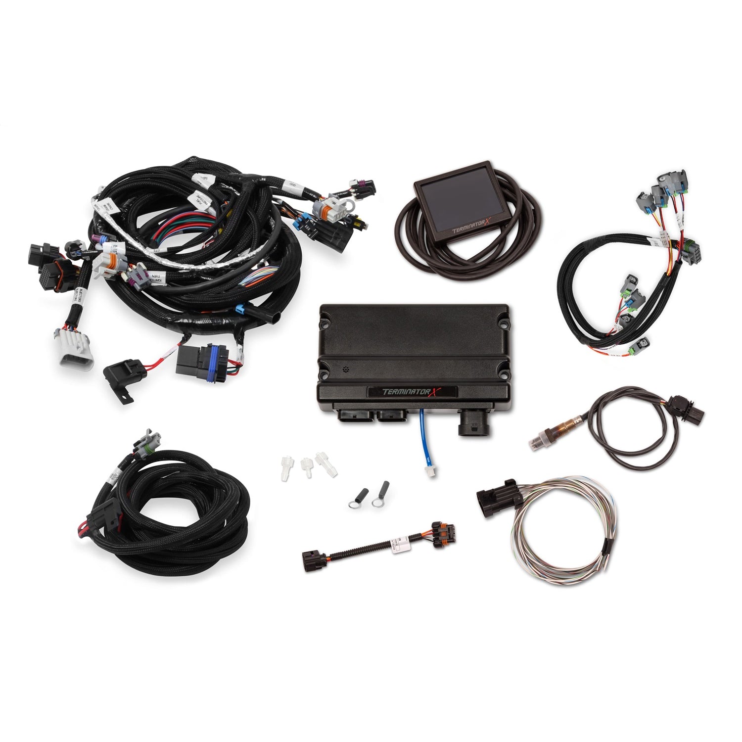 Take control of your LS engine with Terminator X! Dont settle for a junkyard ECU with a cumbersome tuning interface when you can have complete control of your engine, self-learning fuel strategies and the proven, race-winning technology of Holley EFI at a budget-friendly price! Terminator X features real-time fuel learn, high impedance injector drivers, an integrated 1bar MAP sensor, and 4 programmable inputs and outputs. The inputs and outputs are ideal for electric fans, boost control solenoids, progressive nitrous control, and much more. Terminator X comes fully loaded with base maps for common LS engine combinations to get you out of the garage and on the road/track fast. The 3.5 in. touch screen LCD handheld contains an easy to use calibration wizard as well as tuning and gauge display functions. Also included is Holley EFIs industry-leading, easy to use software suite that allows full laptop access for advanced users. Whether you are building a budget beater or a boosted race car, Terminator X has the features and technology you need at a price that wont break the bank!