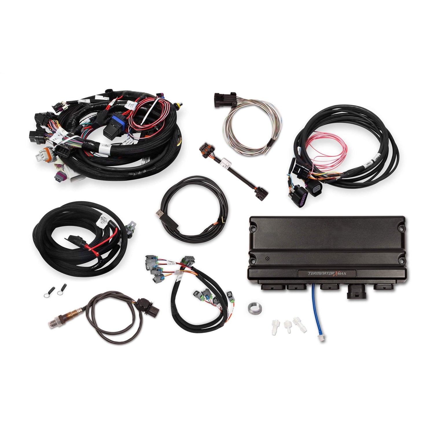 Take control of your LS engine with Terminator X Max! Dont settle for a junkyard ECU with a cumbersome tuning interface when you can have complete control of your engine, self-learning fuel strategies and the proven, race-winning technology of Holley EFI at a budget-friendly price! Terminator X Max features real-time fuel learn, high impedance injector drivers, an integrated 1bar MAP sensor, and 4 programmable inputs and outputs. The inputs and outputs are ideal for electric fans, boost control solenoids, progressive nitrous control, and much more. Part number 550-929 also has Drive-by wire throttle body control. Terminator X Max comes fully loaded with base maps for common LS engine combinations to get you out of the garage and on the road/track fast. These Terminator X kits include a USB/CAN tuning cable instead of the 3.5 in. Handheld LCD, these kits require the use of the free Terminator X Software for initial setup. The Terminator X Software includes multiple base calibrations to choose from for either naturally aspirated or boosted engines. Also included is Holley EFIs industry-leading, easy to use software suite that allows full laptop access for advanced users. Whether you are building a budget beater or a boosted race car, Terminator X MAX has the features and technology you need at a price that wont break the bank!
